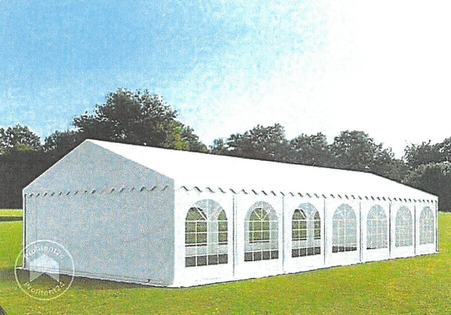 Professionele party tent 14x6 m, versterkt frame, grond framen, inclusief storm riemen en grond pinnen, gedemonteerd