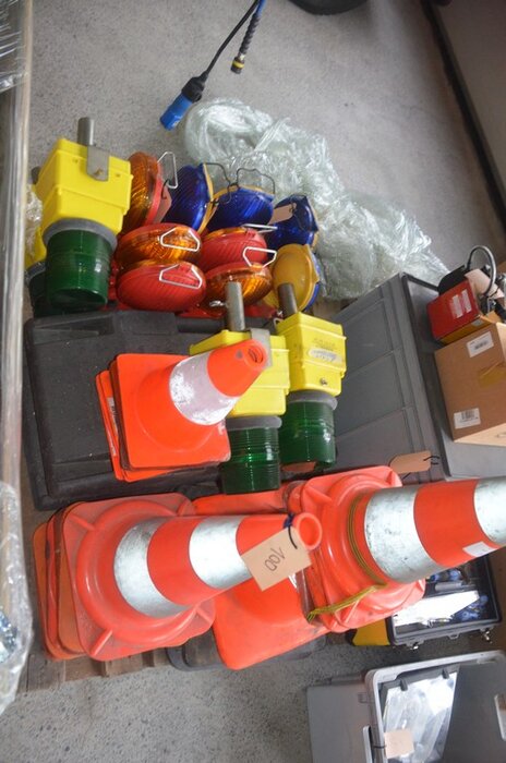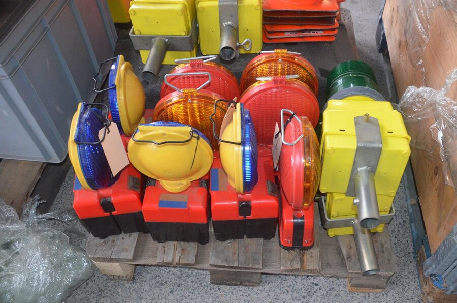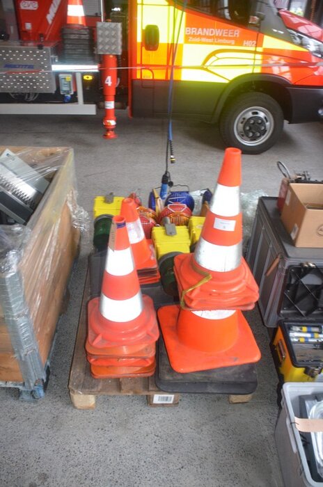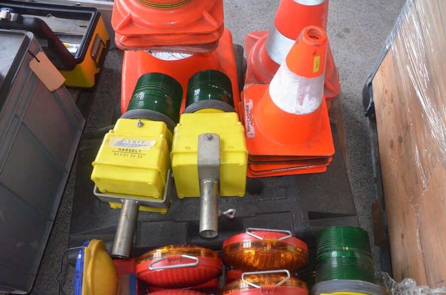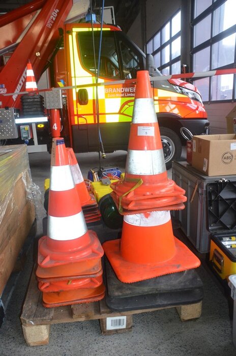 18 Stuks signalisatiekegels, 13 stuks signalisatielampen, 2 rubberen voeten