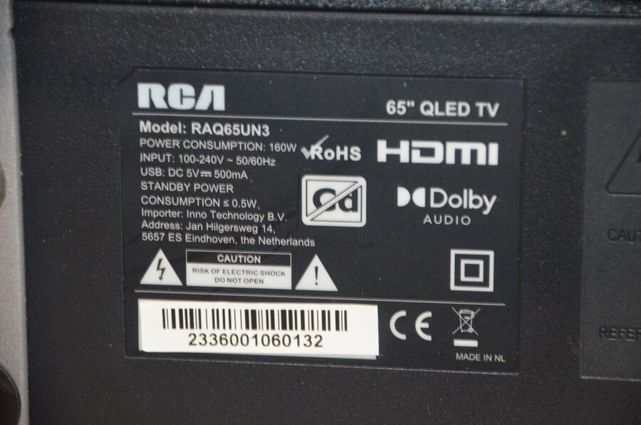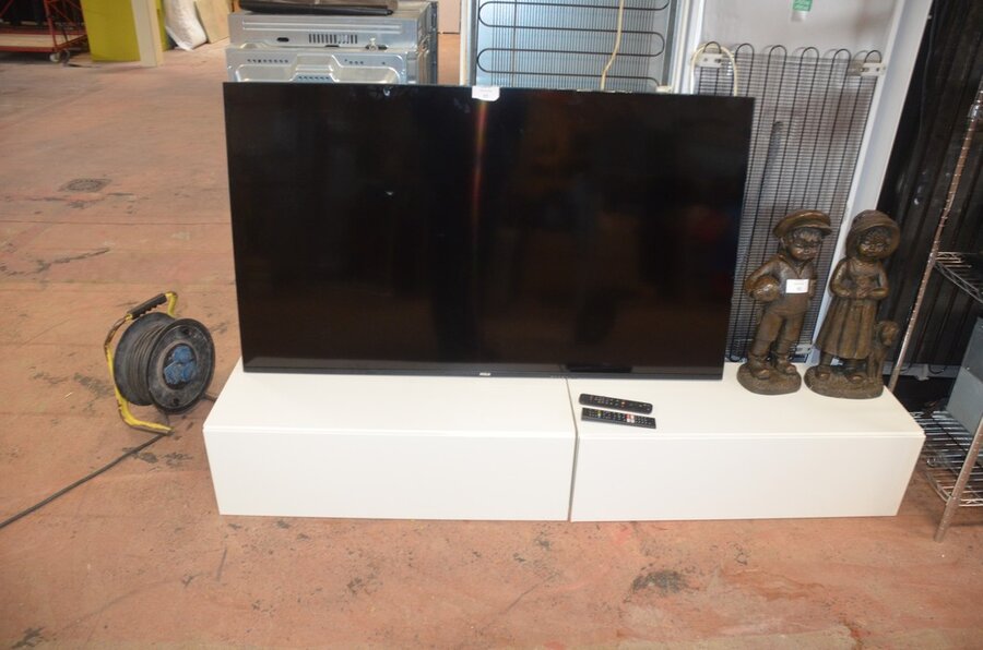 Flatscreen tv RCA qled RAQ65UN3 met afstandsbediening, 2 wit moderne tv kasten 2 valdeuren