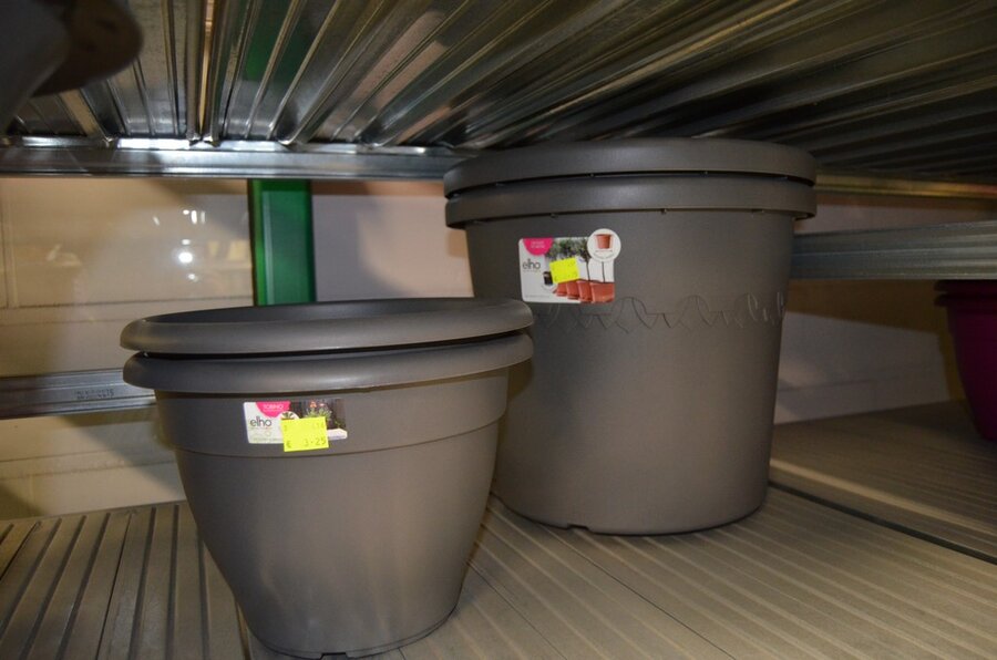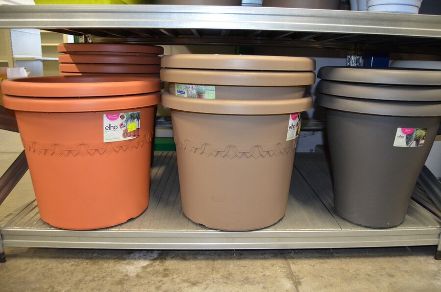ca 115 diverse BLOEMPOTTEN op 9 leggers