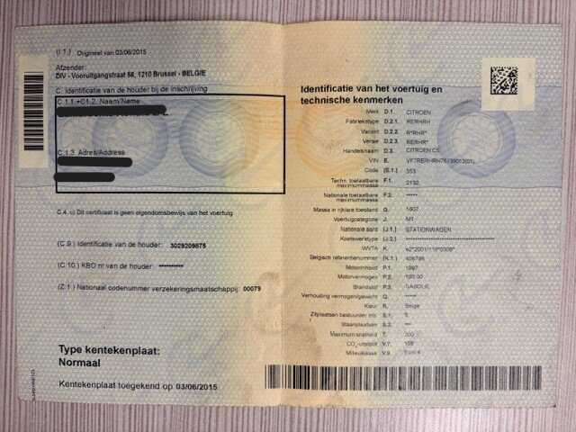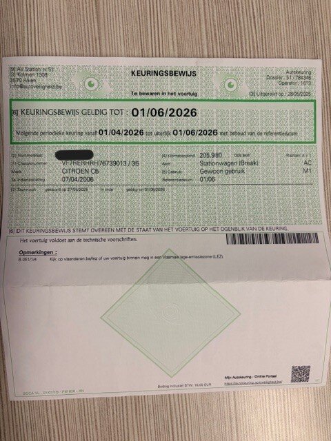 Stationwagen CITROEN C5, type: RERHRH, variant: R*RHR*, versie: RERHR, chassisnummer: VF7RERHRH76739013, bouwjaar: 07/04/2006 met inschrijvingsbewijs deel I, gelijkvormigheidsattest en schouwingsbewijs