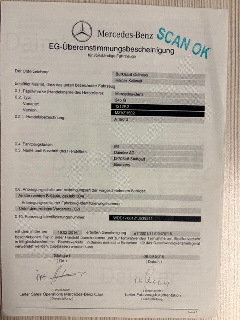 Stationwagen MERCEDES BENZ A 180D, type: 245G, variant: 1212P2, versie: MZAZ1502, chassisnummer: WDD1760121J539511, bouwjaar: 18/10/2016, met inschrijvingsbewijs deel I, gelijkvormigheidsattest en 2 sleutels.