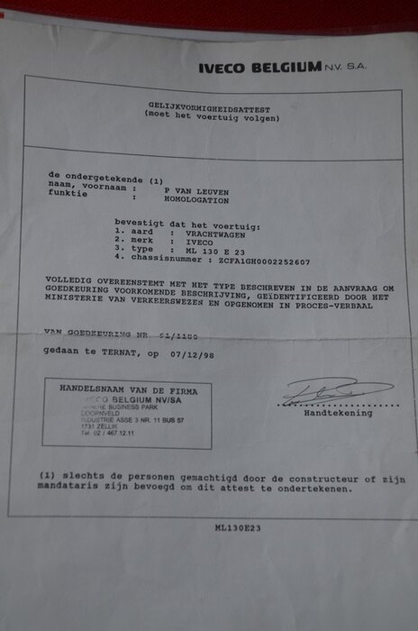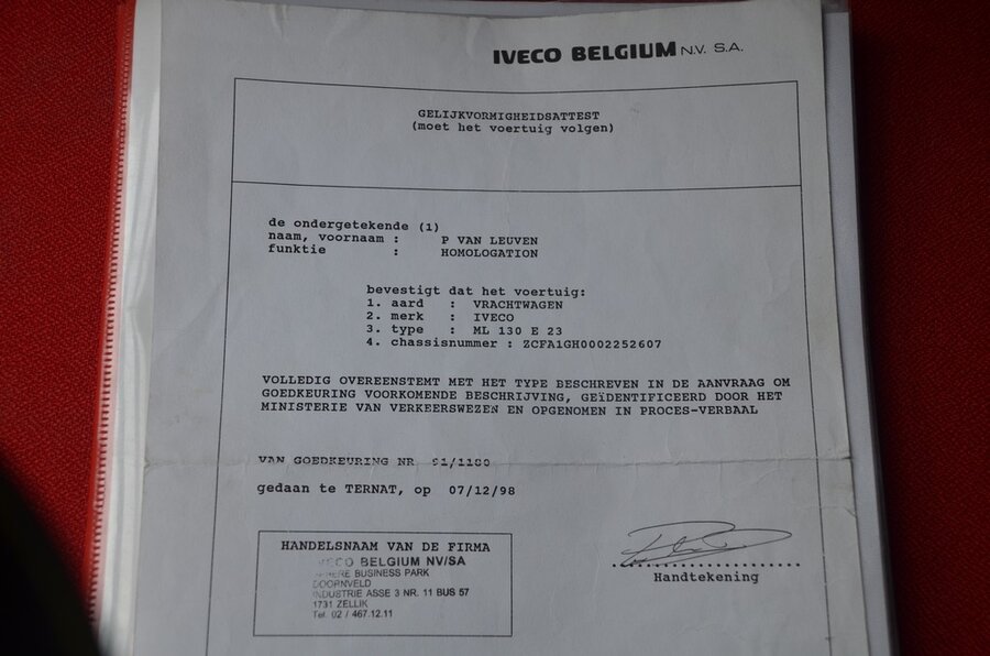 IVECO AL25 ladderwagen, 30 meter, bouwjaar: 11/12/1998, ch.nr. ZCFA1GH002252607 met boorddocumenten en sleutel