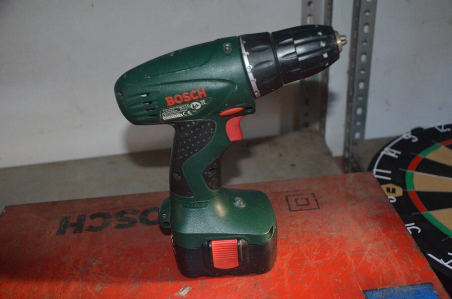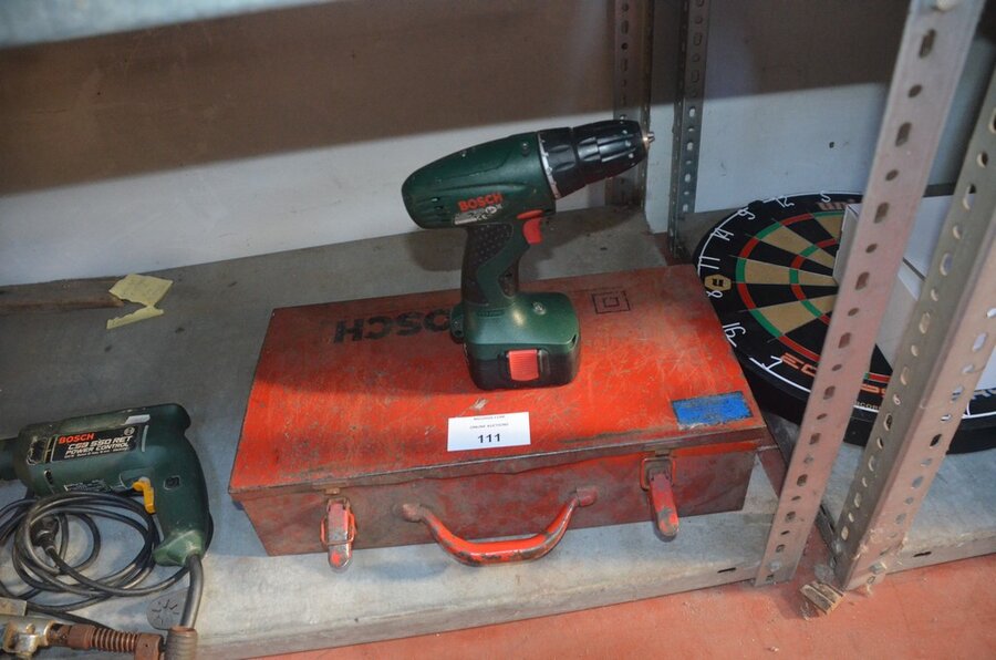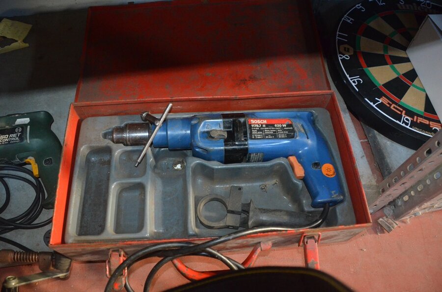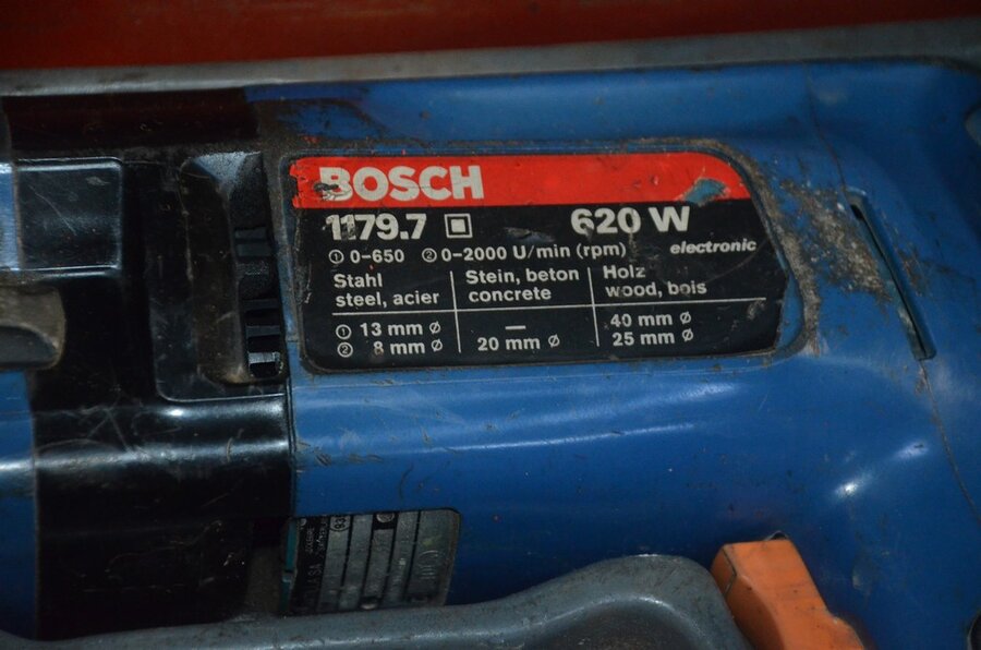 Elektrische boormachine BOSCH 1179.7 620W in metalen koffer, accuboormachine BOSCH PSR 14,4 met accu zonder lader