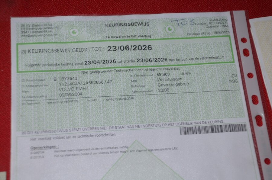 VOLVO FM 4x2 tankwagen, bouwjaar: 06/06/2004, ch.nr. YV2J4CJA12A552658 met boorddocumenten en sleutel