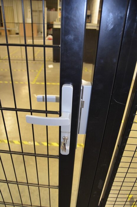 Lotnummer 125 Metalen veiligheidskooi bestaande uit 25 roosterpanelen , 25 staanders en 1 deur (169) Deze veiling is afgelopen