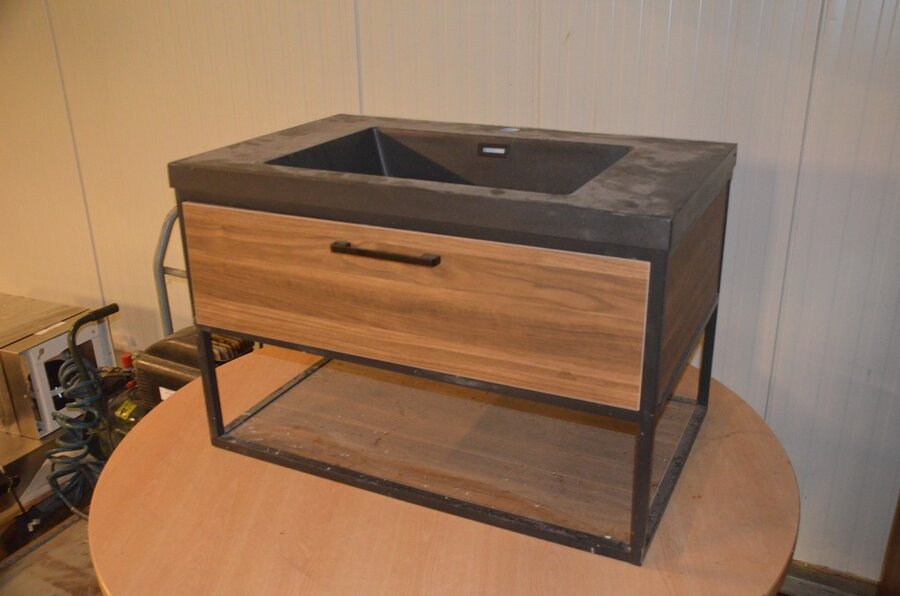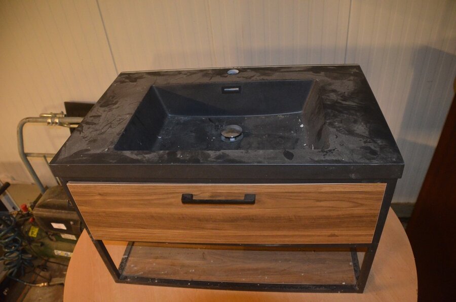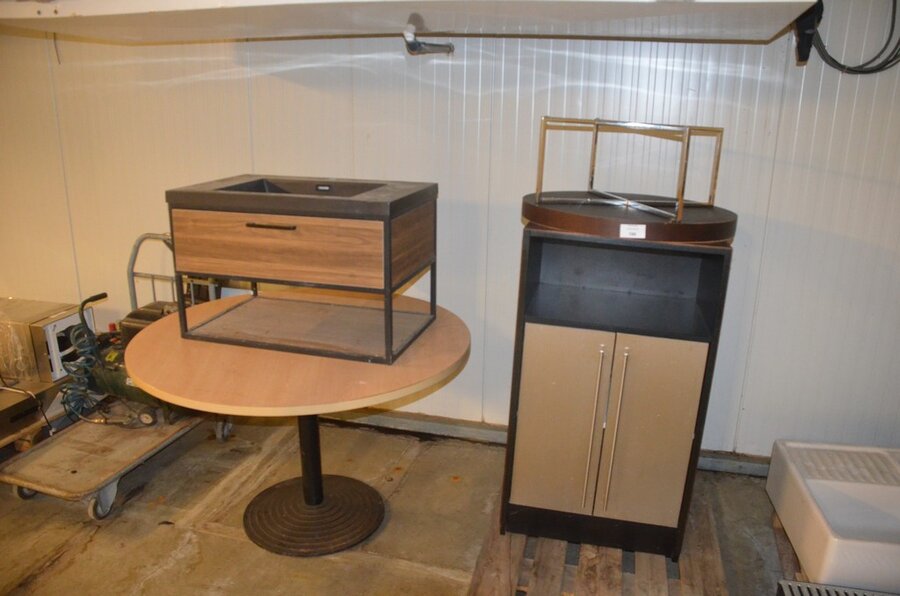 Lotnummer 196 Modern badkamerkastje , ronde tafel, ronde moderne salontafel, kastje 2 deuren Deze veiling is afgelopen