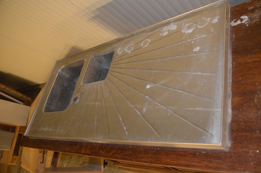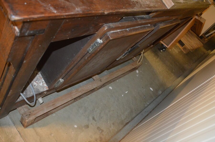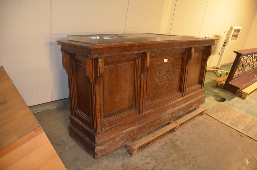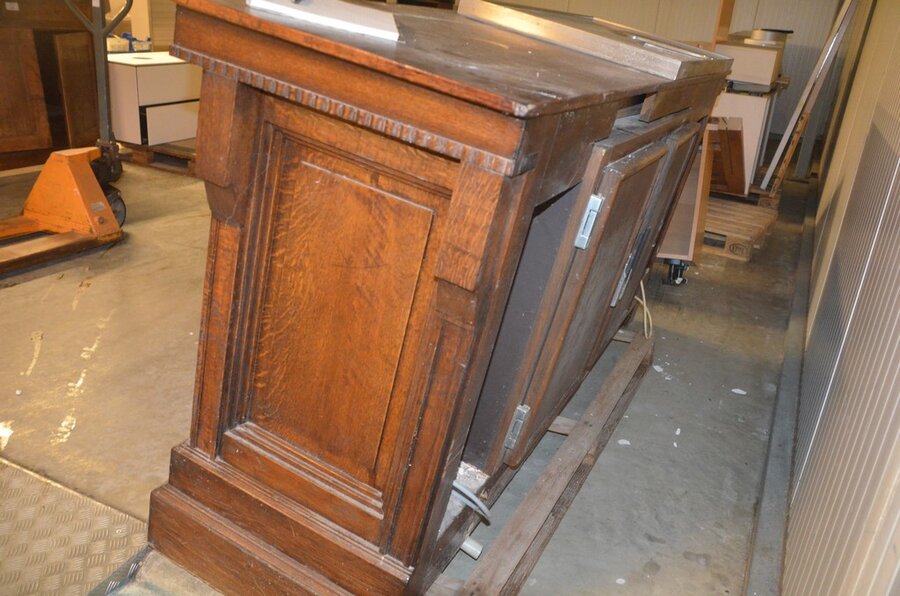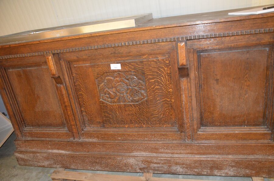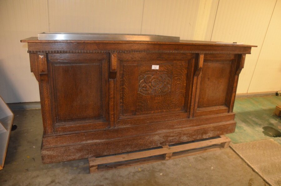 Lotnummer 193 Oude eiken toog met ingebouwde koelkast 2 deurenen inox spoelbak Deze veiling is afgelopen