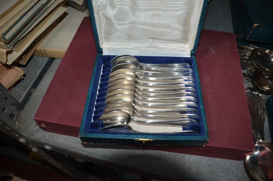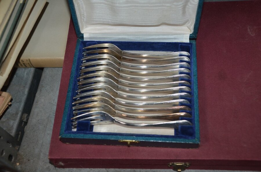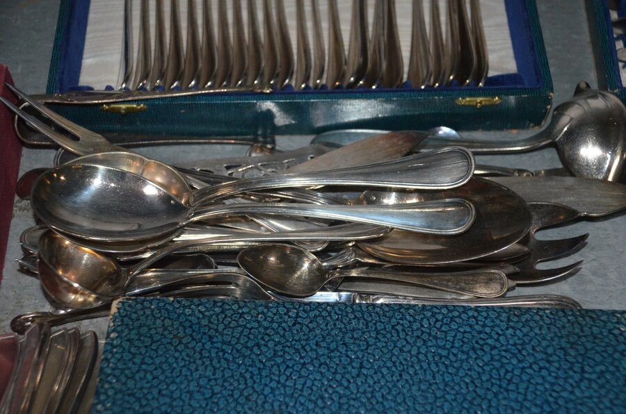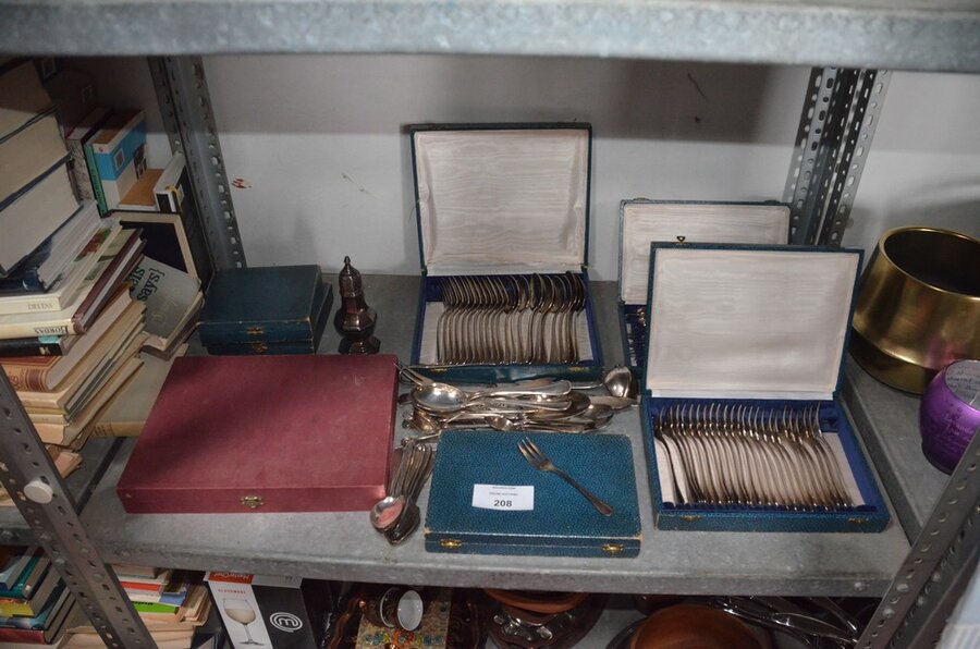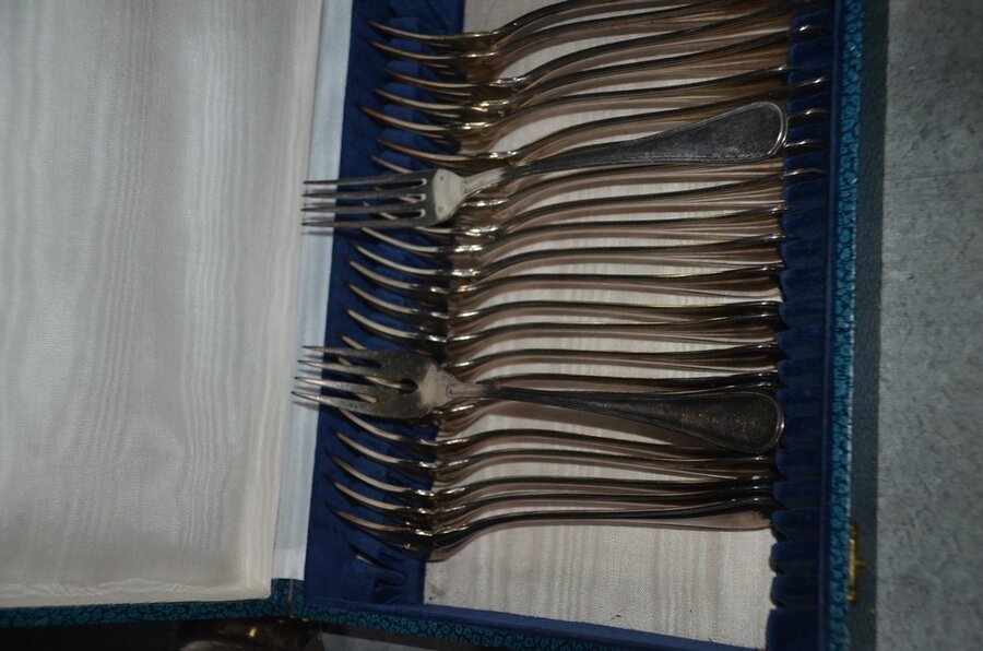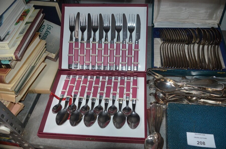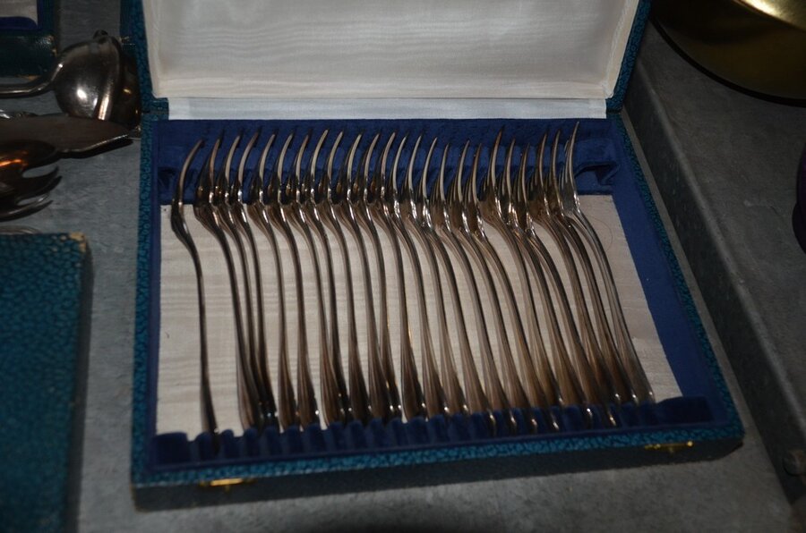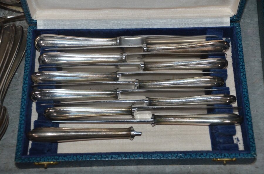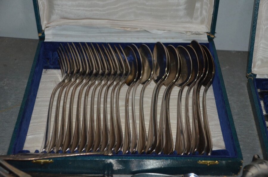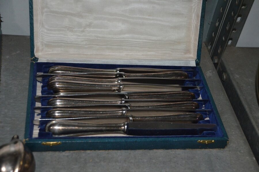 Lotnummer 208 2 Messensets in doos, vorkenset in doos, vorken- en messenset in doos, dessertvorkenset in doos, koffielepelset in doos, diverse lepels en vismessen, suikerstrooier, 6-delig bestek in doos Deze veiling is afgelopen
