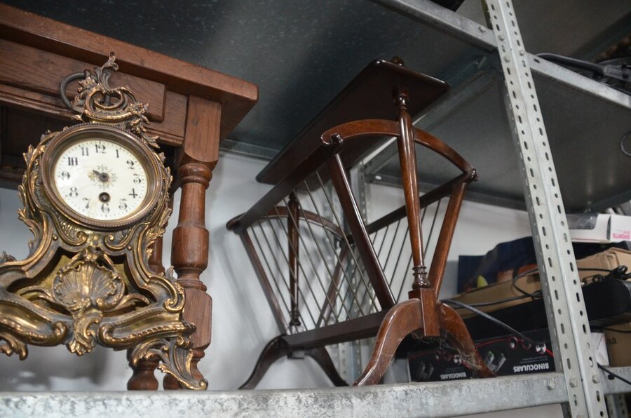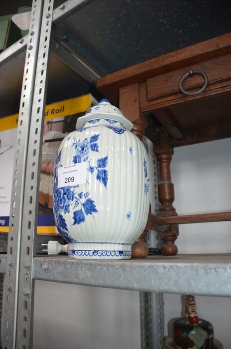 Lotnummer 209 Pot met deksel in delfts, klok barrok, houten bijzettafeltje 1 lade afm. 50x35x46, houten krantenrekje Deze veiling is afgelopen