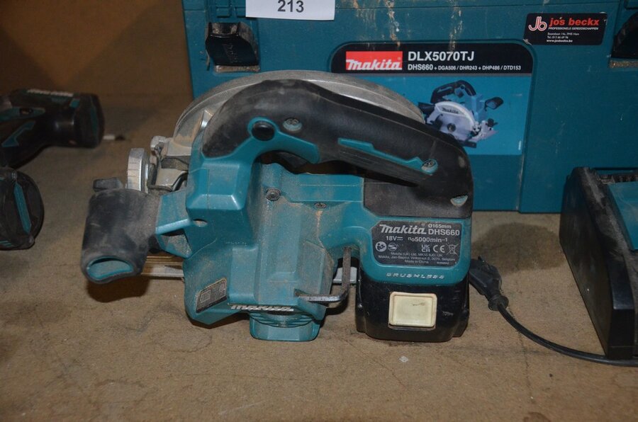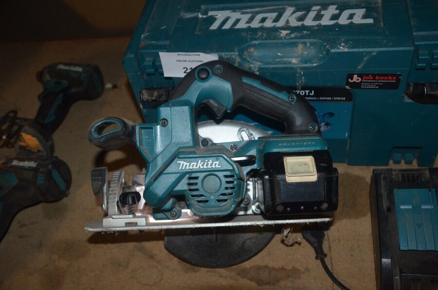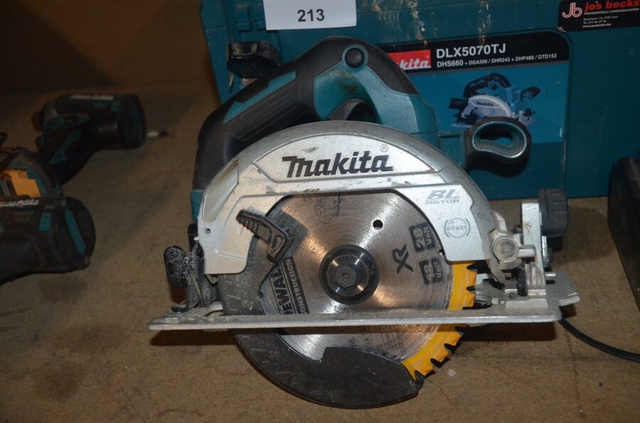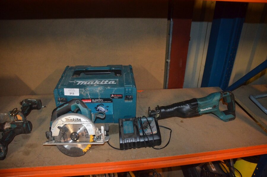 Accu handcirkelzaag MAKITA DLX660 met lader en accu in koffer , accu reciprozaag MAKITA zonder lader zonder accu DJR186 (3,16)