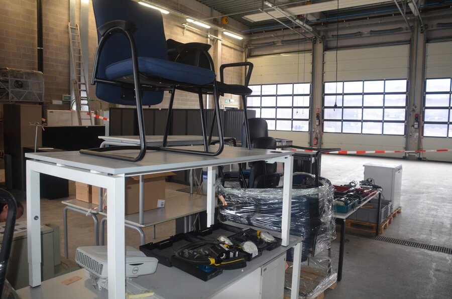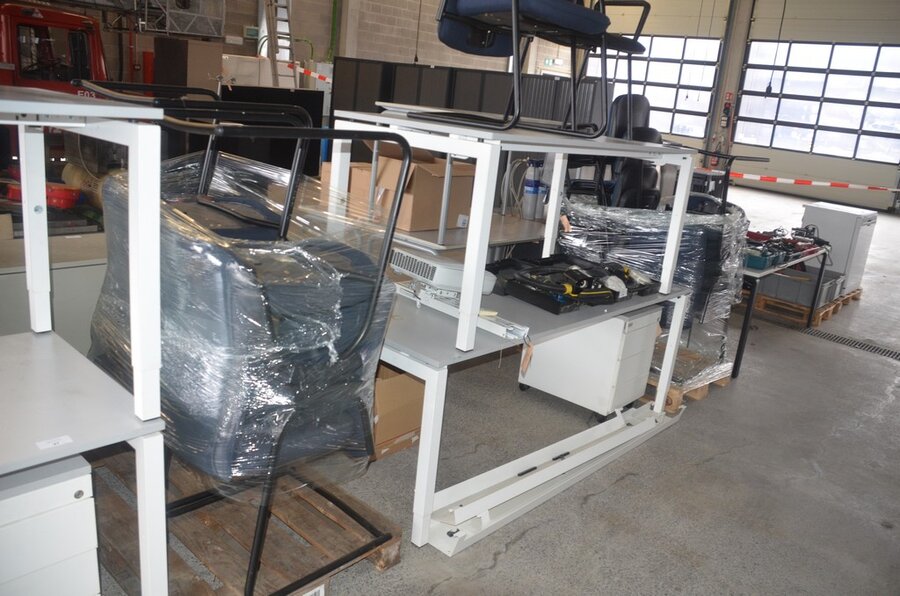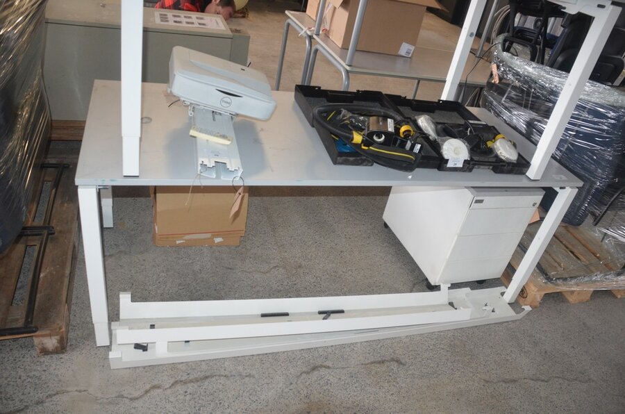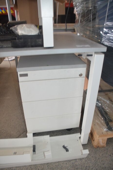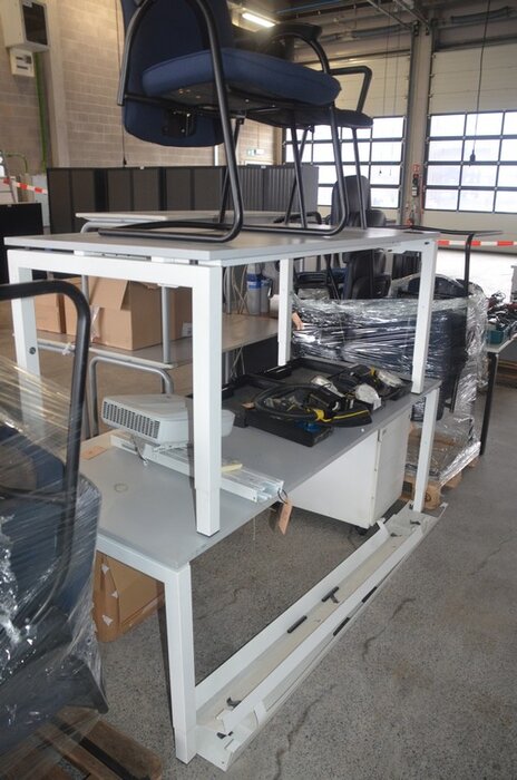Rechthoekige tafel wit afm. 200x80, rechthoekige tafel wit afm. 160x80, tafel wit afm. 200x100 met stopcontactdoos, 7 stoelen , 7 stoelen, ladenblok wit