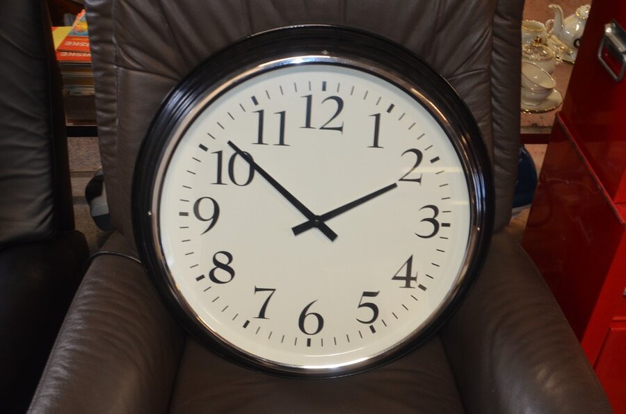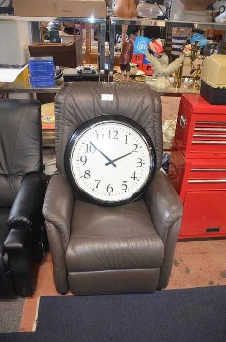 Elektrische relaxzetel bruin leder , ronde wandklok