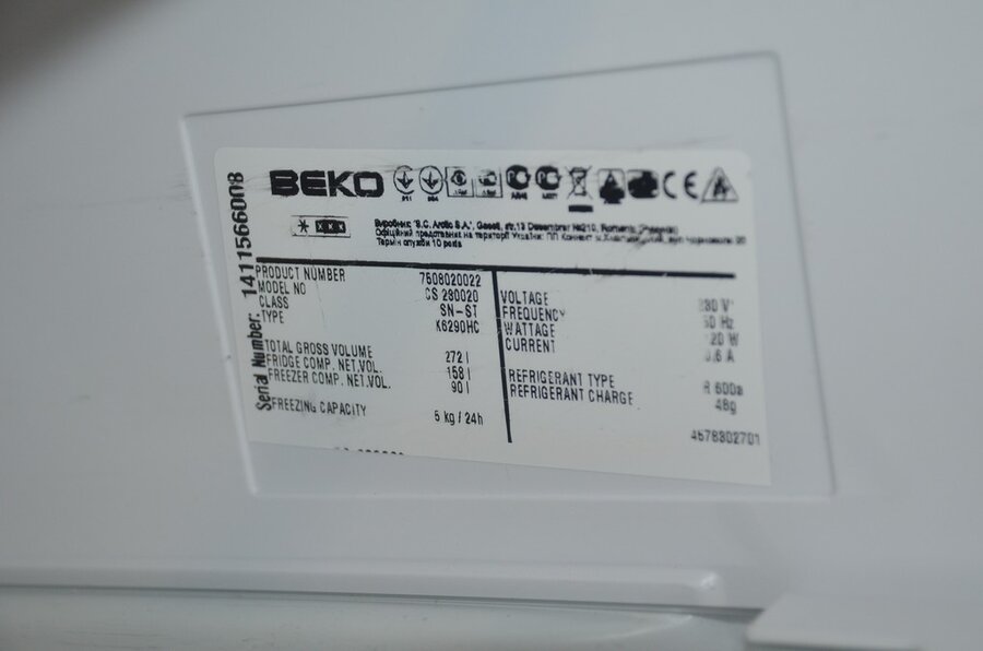 Staande diepvries-koelkast combinatie BEKO CS280020
