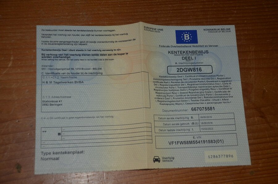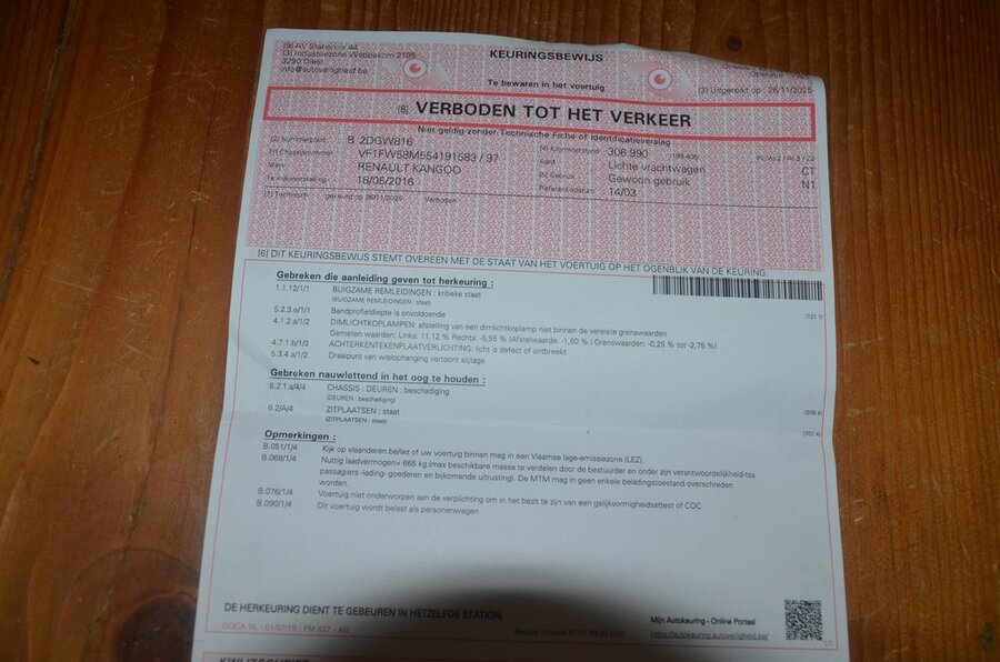 Lichte vrachtwagen RENAULT KANGOO, type W, variant FW58, ch.nr. VF1FW58M554191583, bouwjaar 18-05-2016 (sleutel, boorddocumenten: inschrijvingsbewijs Deel I en gelijkvormigheidsattest) (2)