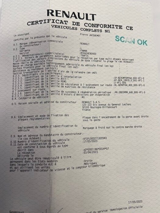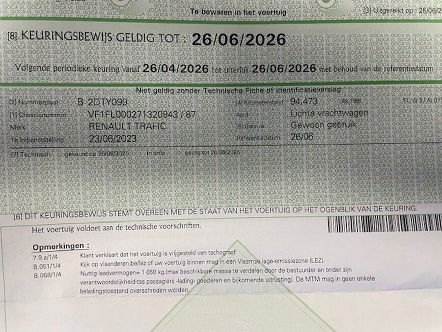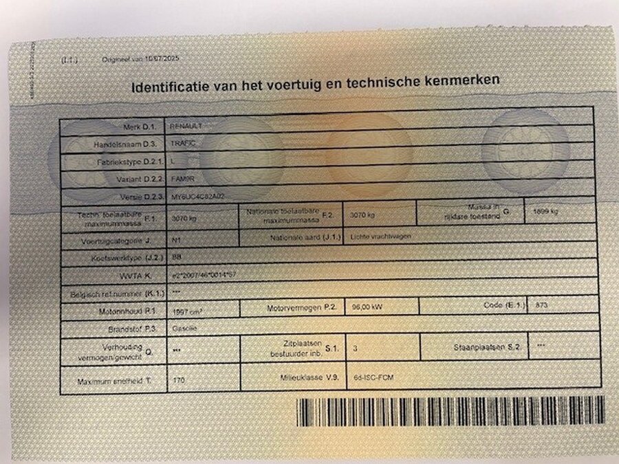 Lichte vrachtwagen RENAULT TRAFIC, type L, variant FAM9R, versie MY6UC4C82A02, ch.nr. VF1FL000271320943, bouwjaar 23-06-2023 (sleutel, boorddocumenten: inschrijvingsbewijs Deel I + Deel II, gelijkvormigheidsattest)