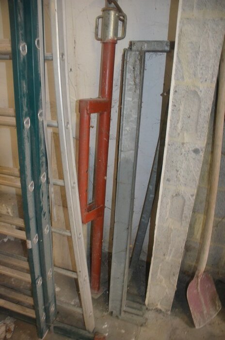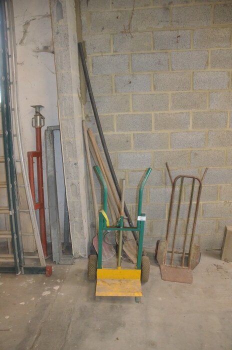 2 Steekwagentjes, 5 schuppen, 1 steiger, 5 metalen balken
