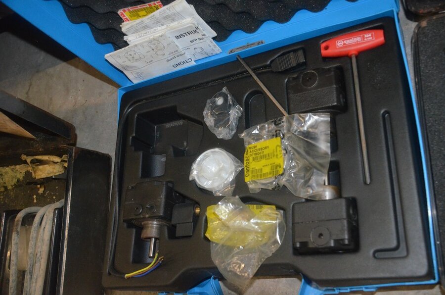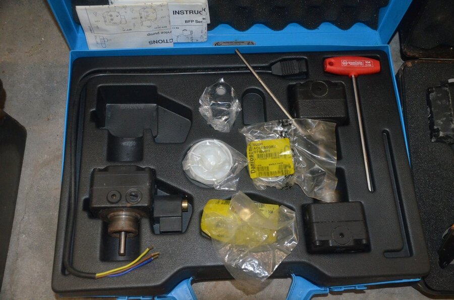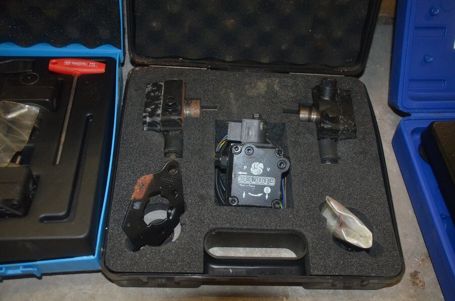 Testtoestel BRIGON in koffer, onderhoudspomp DANFOSS BFP in koffer, onderhoudspomp SUNTEC in koffer