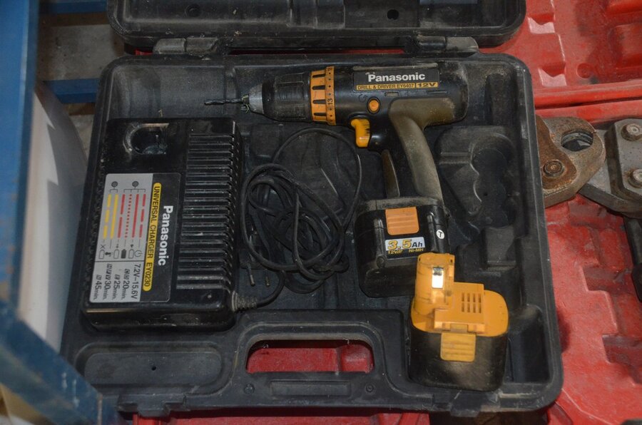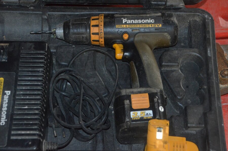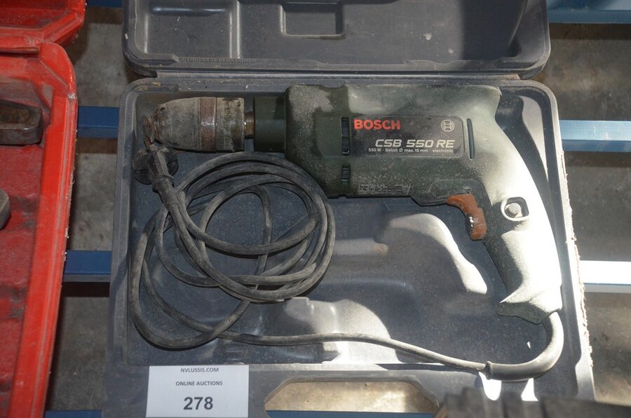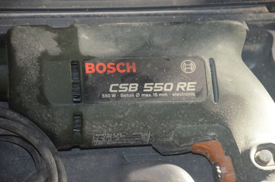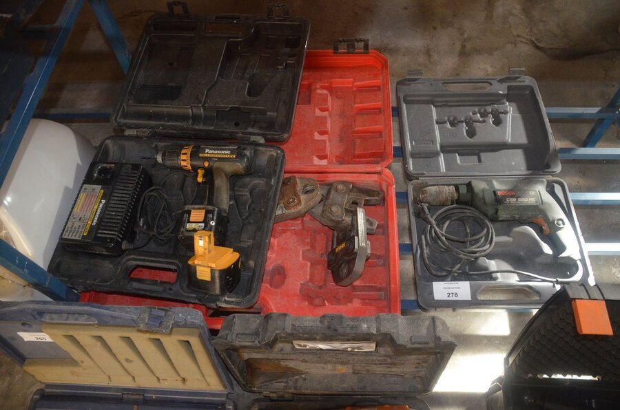 Elektrisch boormachine BOSCH CSB 550RE in koffer, elektrisch boormachine PANASONIC EY6407 in koffer, 3 klemmen REMS