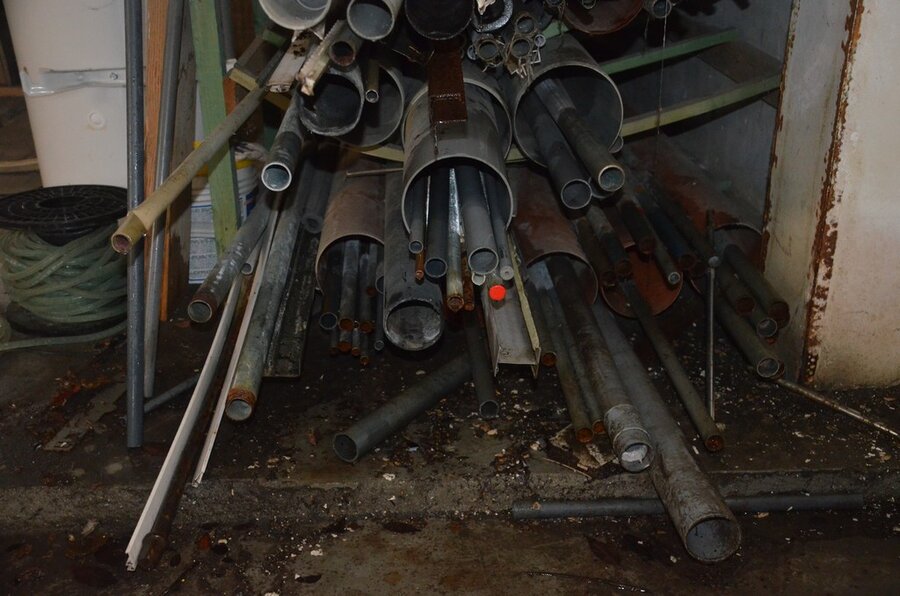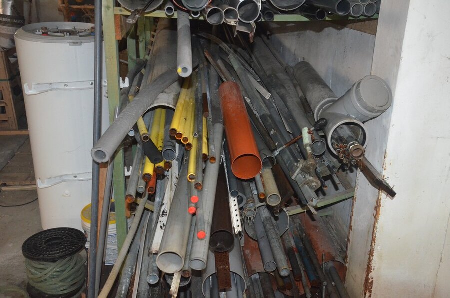 Alu ladder 19 treden, partij pvc en metalen buizen