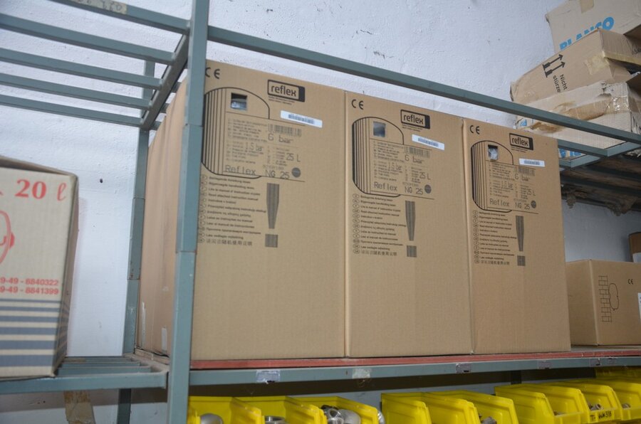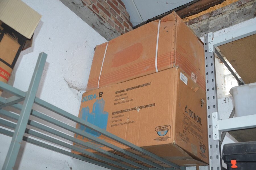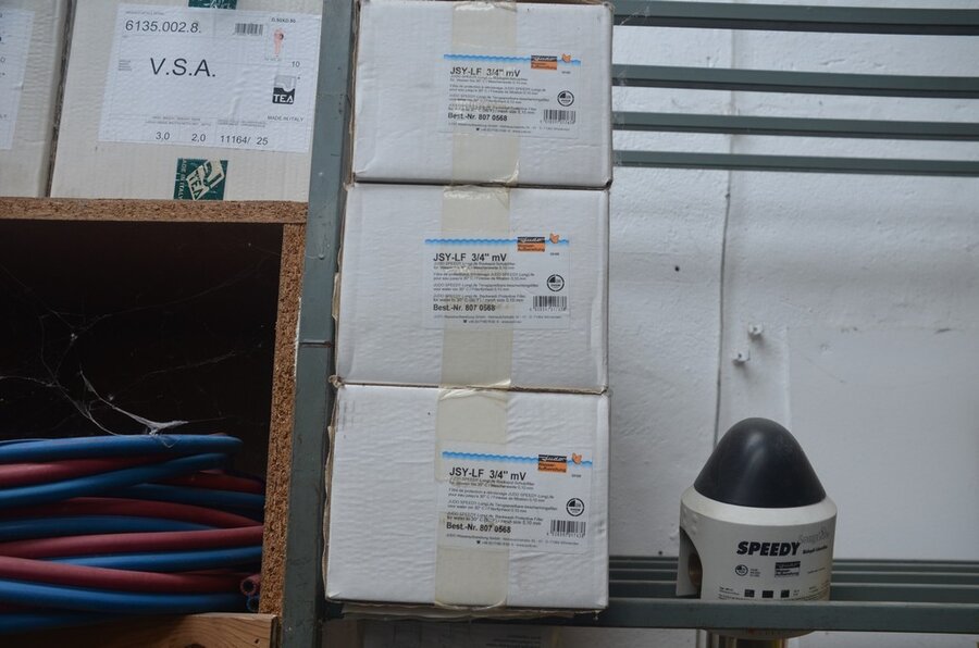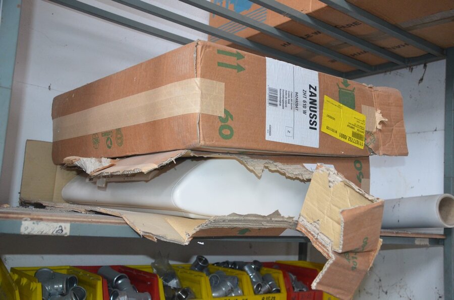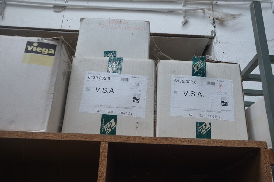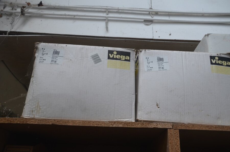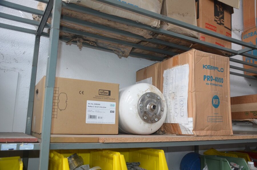 Grote partij koppelstukken, 13 drukvaten diverse modellen, 2 dampkappen ZANUSSI ZHT 610W, 3 SPEEDY longlife terugspoelbare beschermingsfilters JSY-LF 3/4mv (zonder groen rek), 5 inbouwvuilbakken