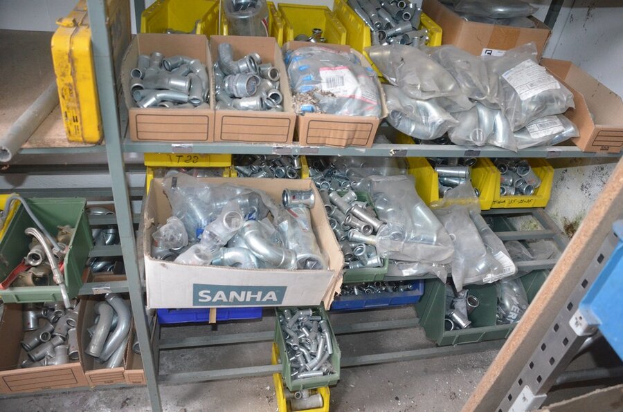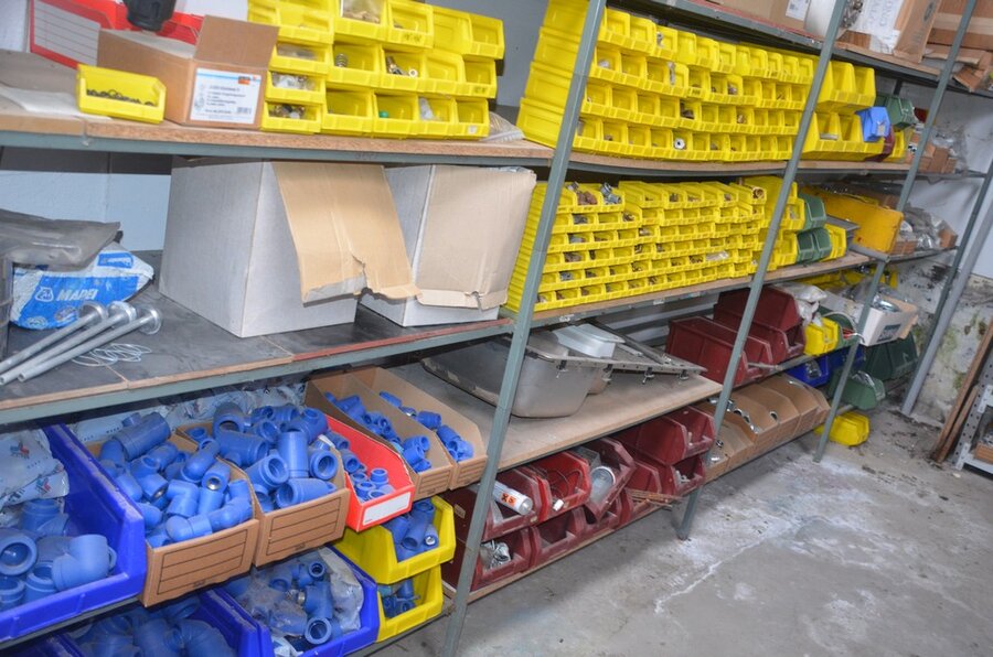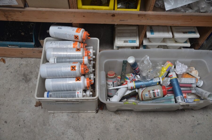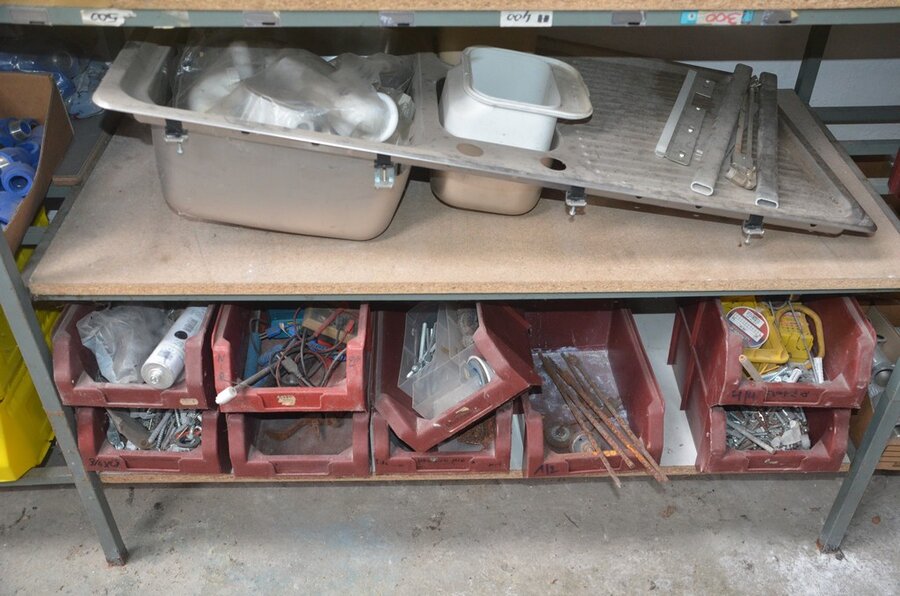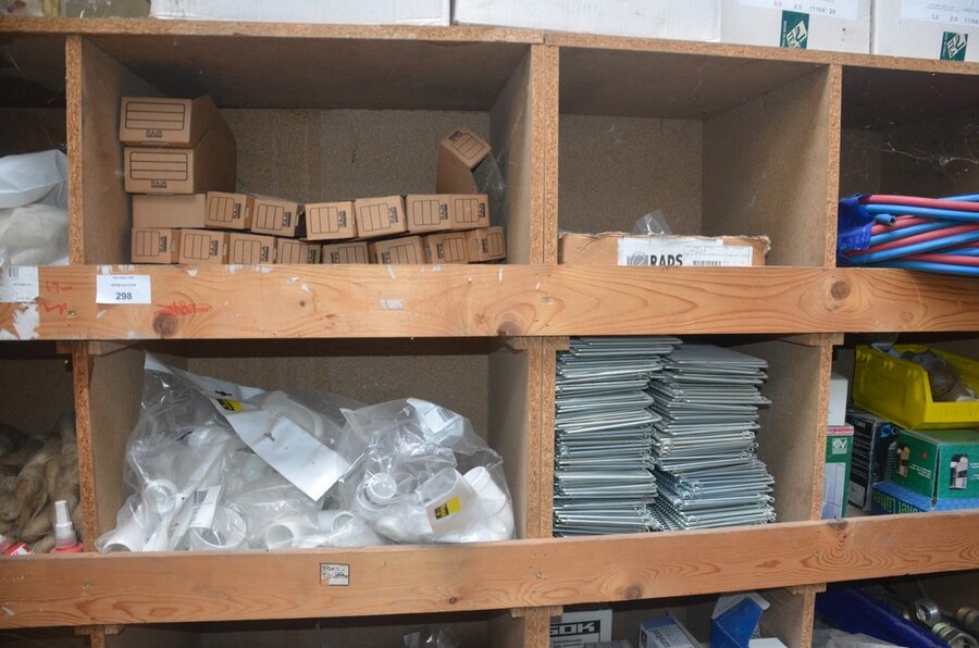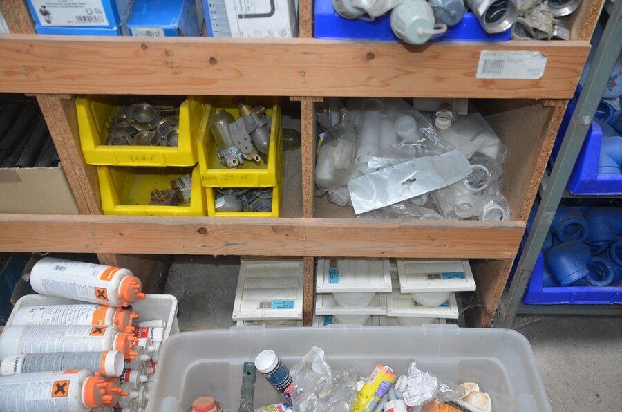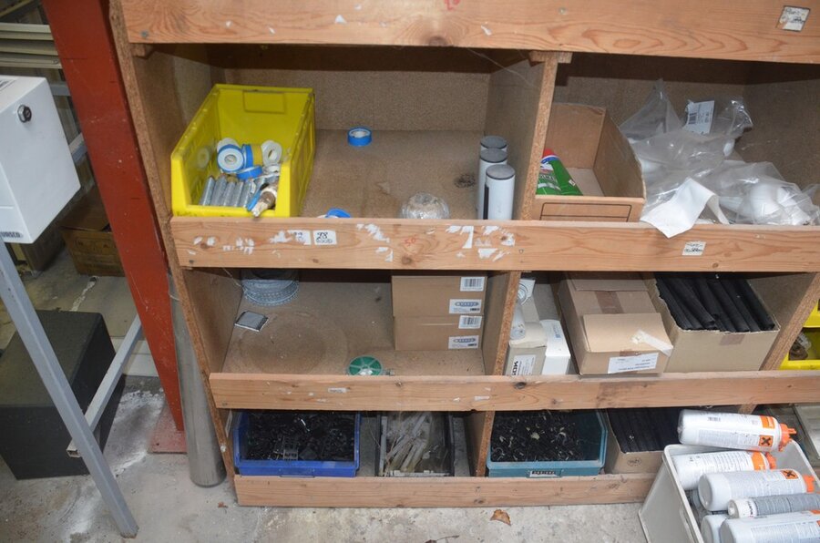 Houten vakkenrek 2,15m met sifons, buizen, afdichtingsmateriaal, lijm, enz
