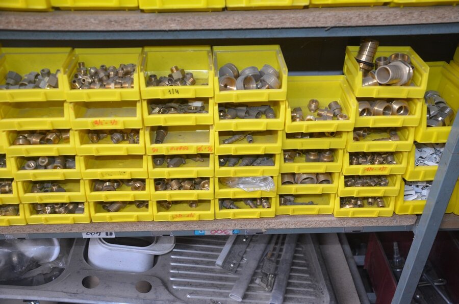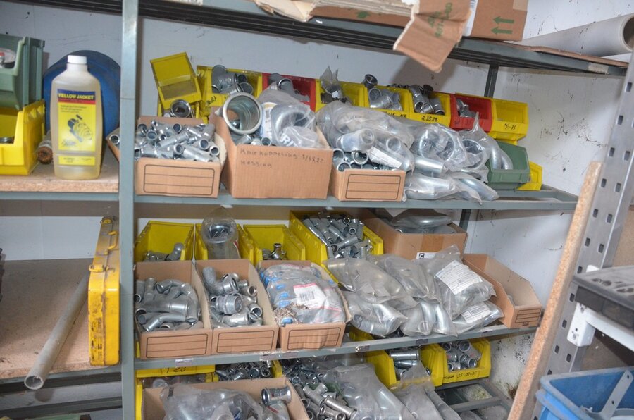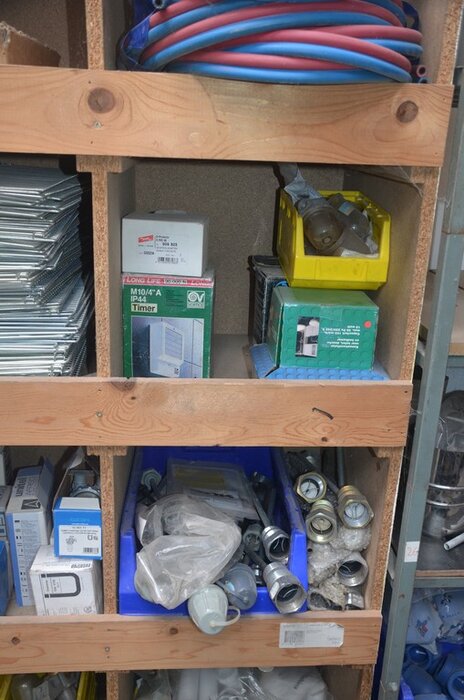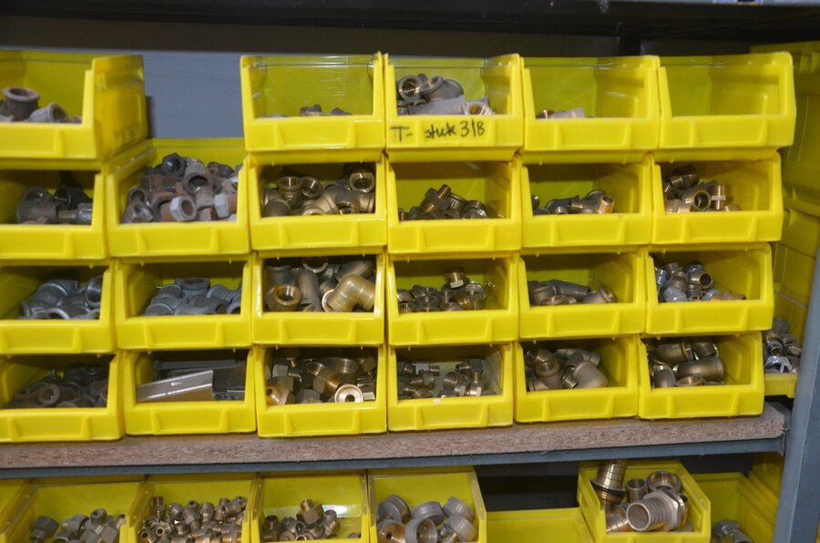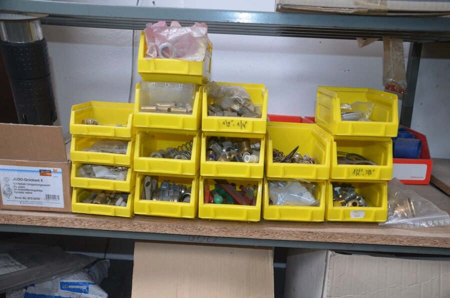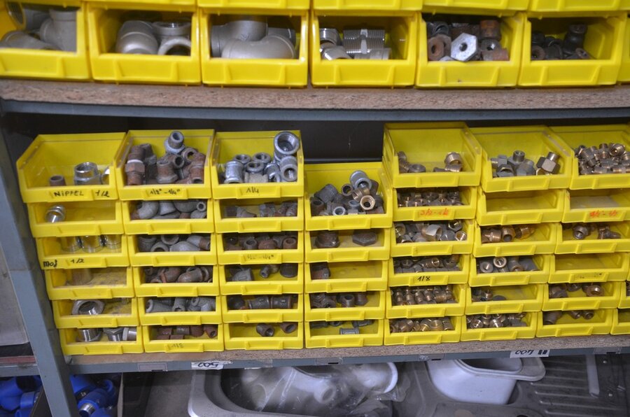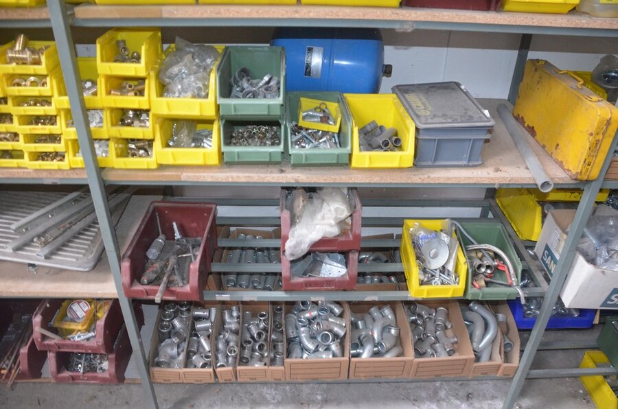 Houten vakkenrek 2,15m met sifons, buizen, afdichtingsmateriaal, lijm, enz