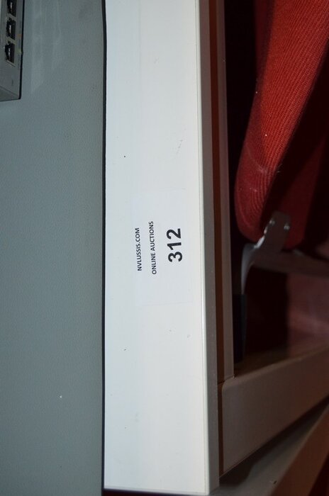 Lotnummer 312 2 stoffen vergaderstoelen, rechthoekige witte tafel 100x200 cm (188,219) Deze veiling is afgelopen
