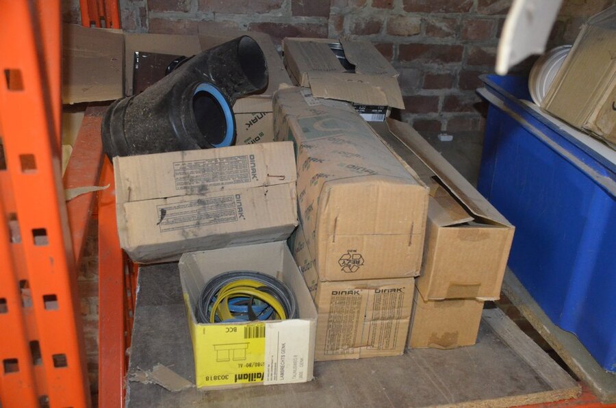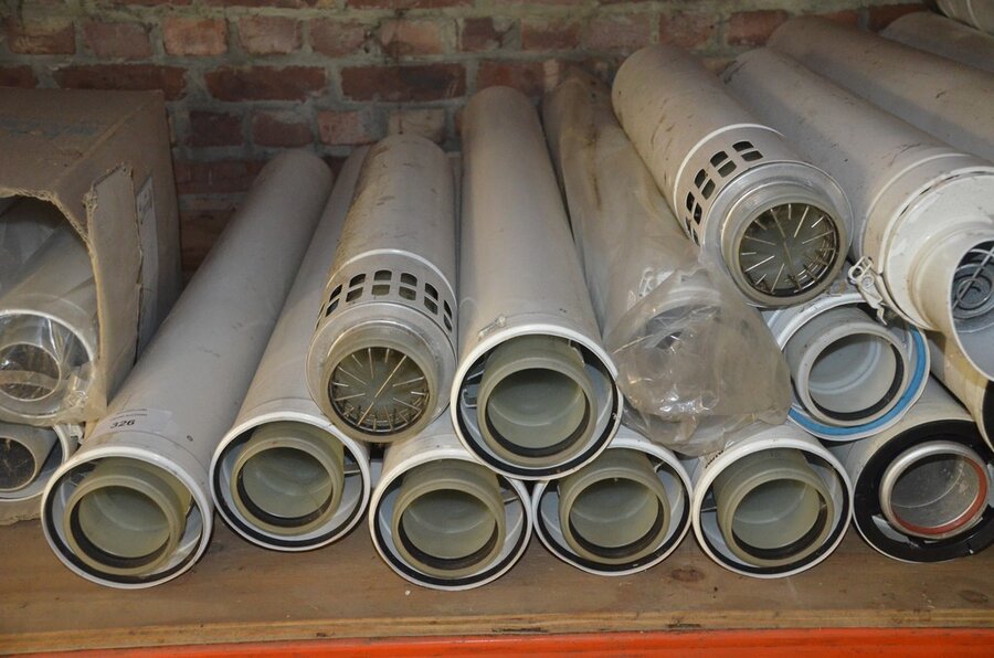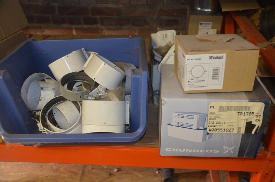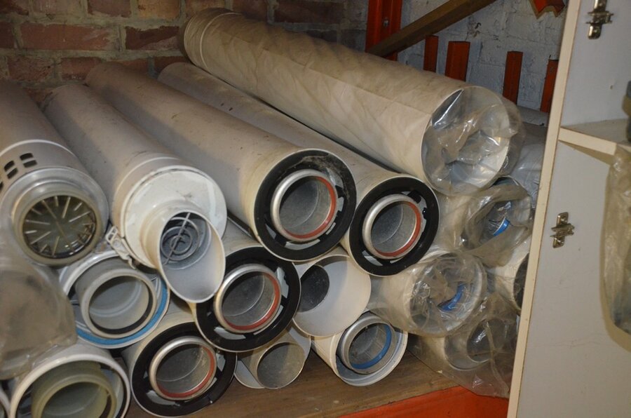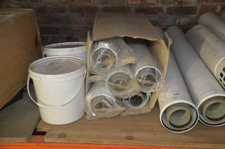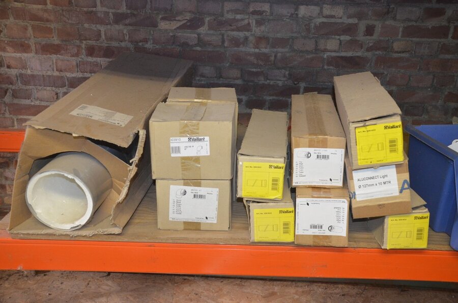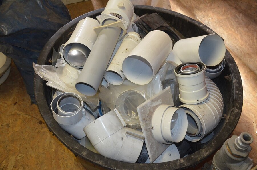 Ca. 35 buizen , metskuip gevuld met koppelstukken en bochten, waterslang
