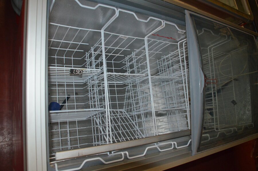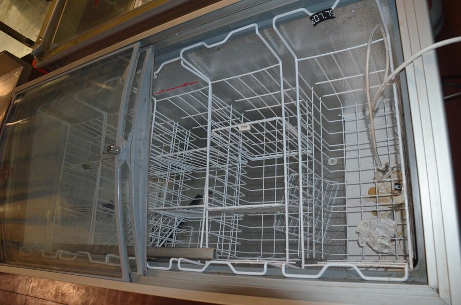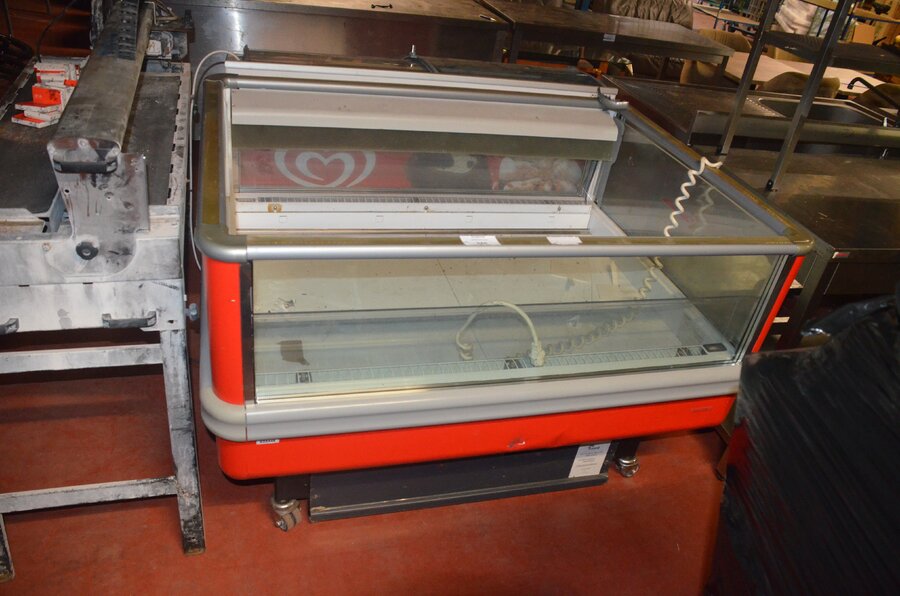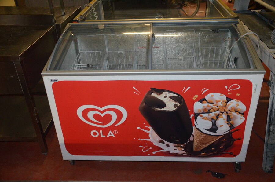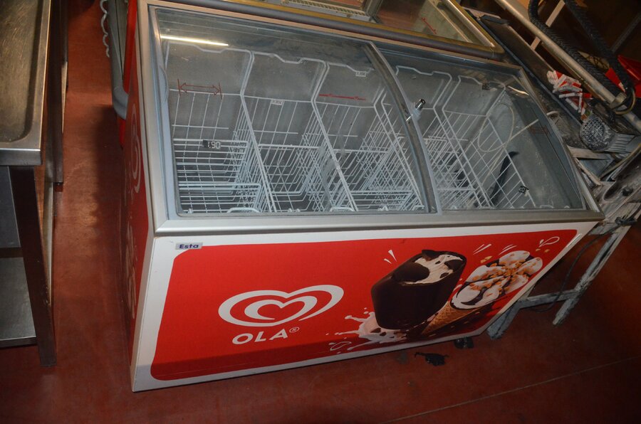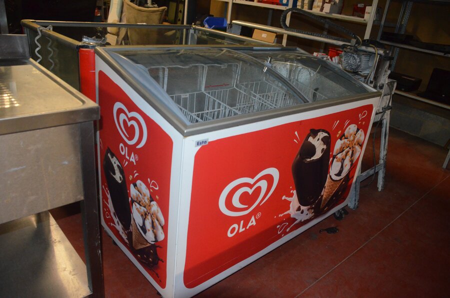 Verrijdbare koeling ARNEG 136x102x94 cm, diepvries ESTA met 2 schuifdeuren opschrift Ola 130x64x95 cm