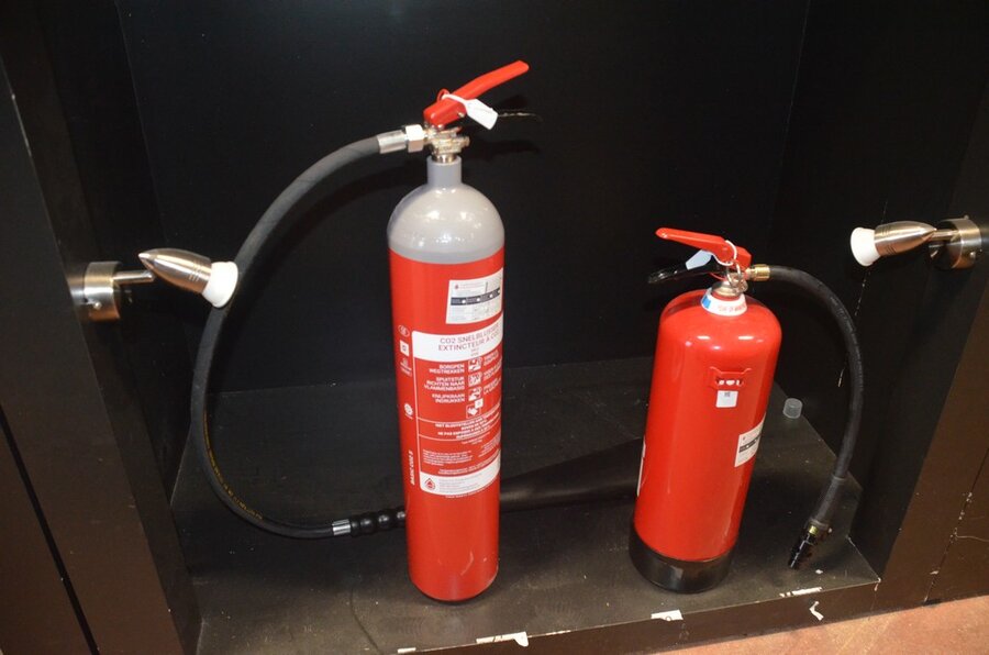 12 Diverse wandversieringen, 2 brandblussers met branddeken (7,22)