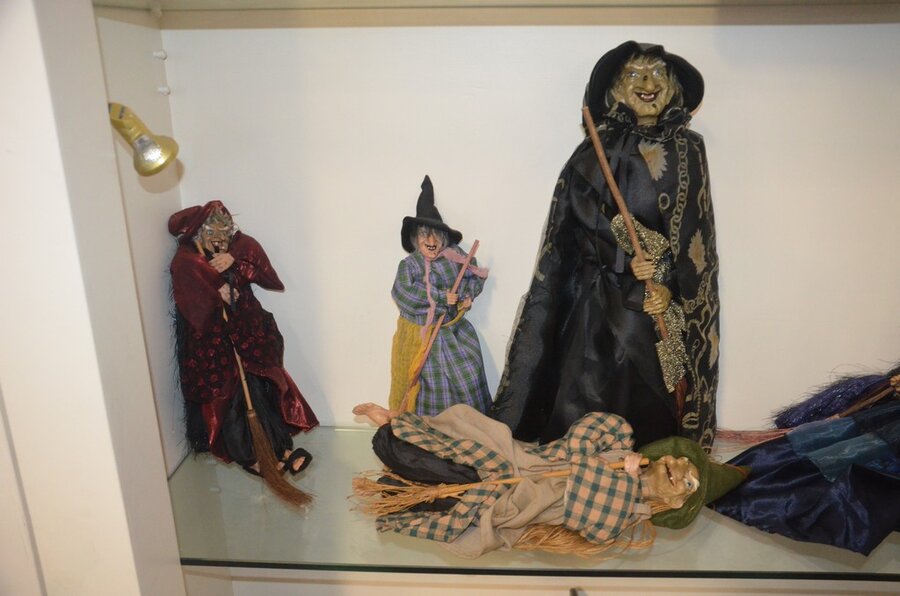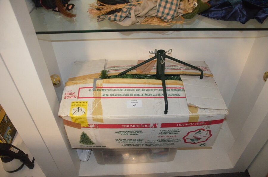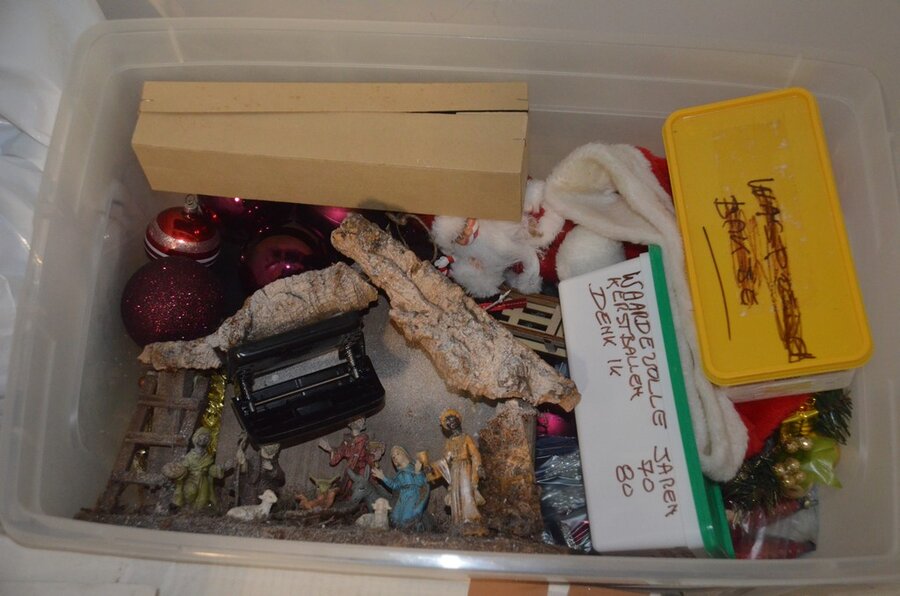 Kunstkerstboom , pvc bak gevuld met kerstgerief, 5 heksen
