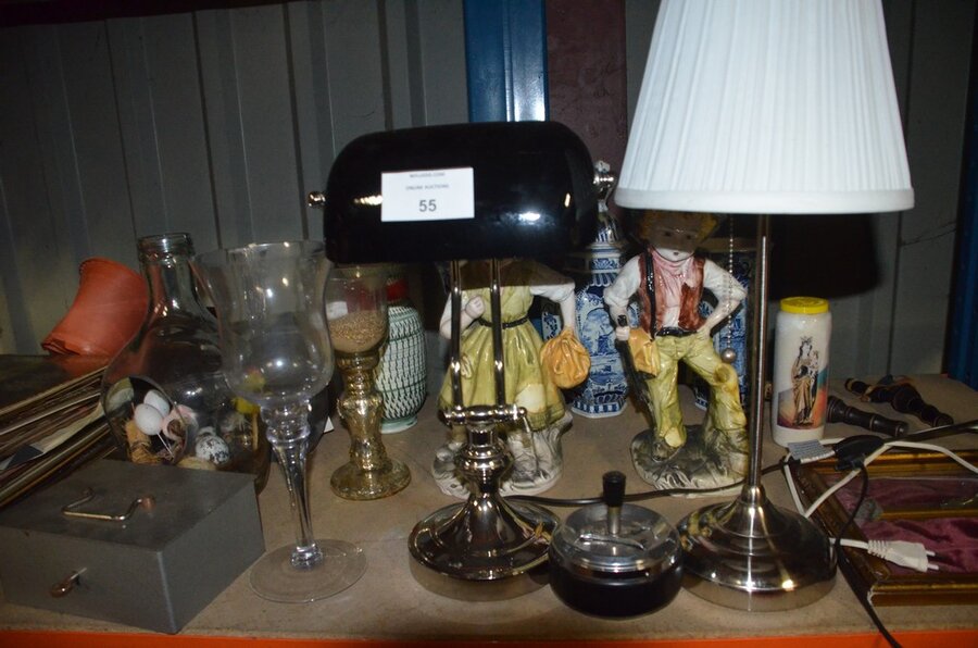 2 Tafellampen, 12 diverse sierstukken