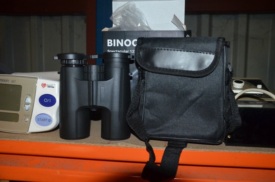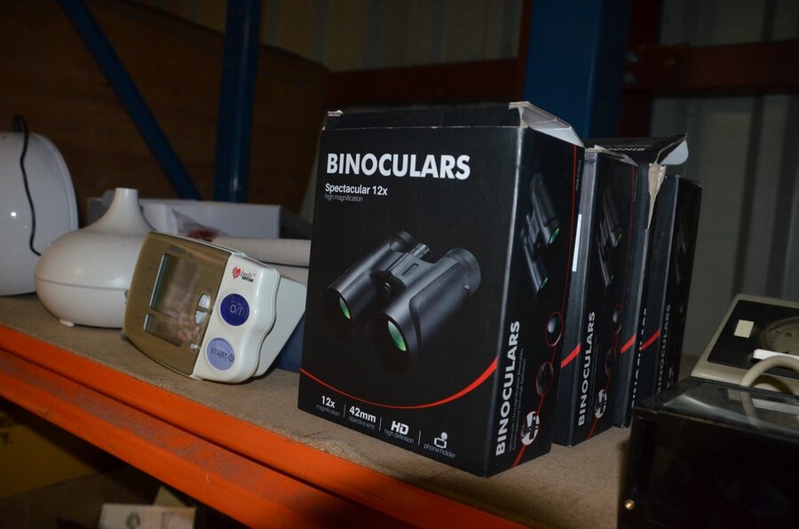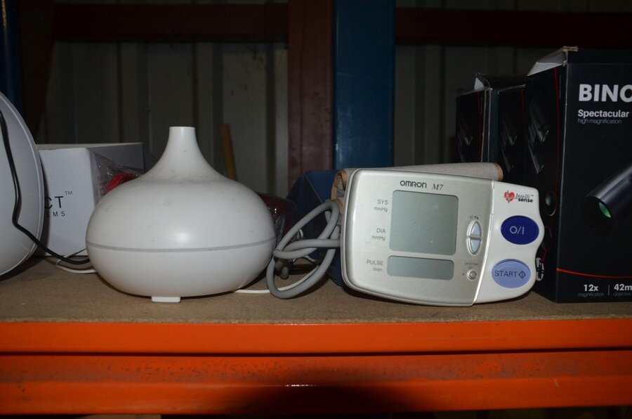 3 Verrekijkers, bloeddrukmeter OMRON M7, luchtbevochtiger, nagellamp