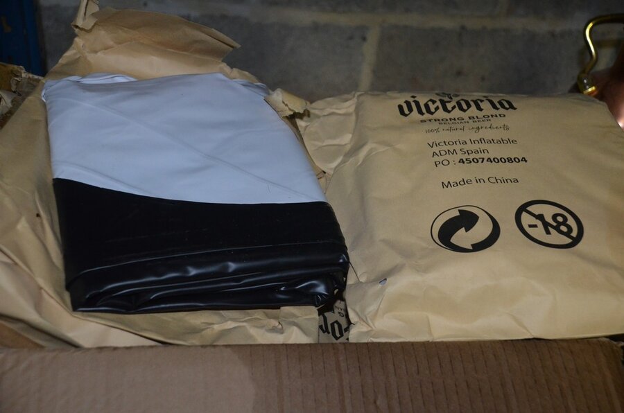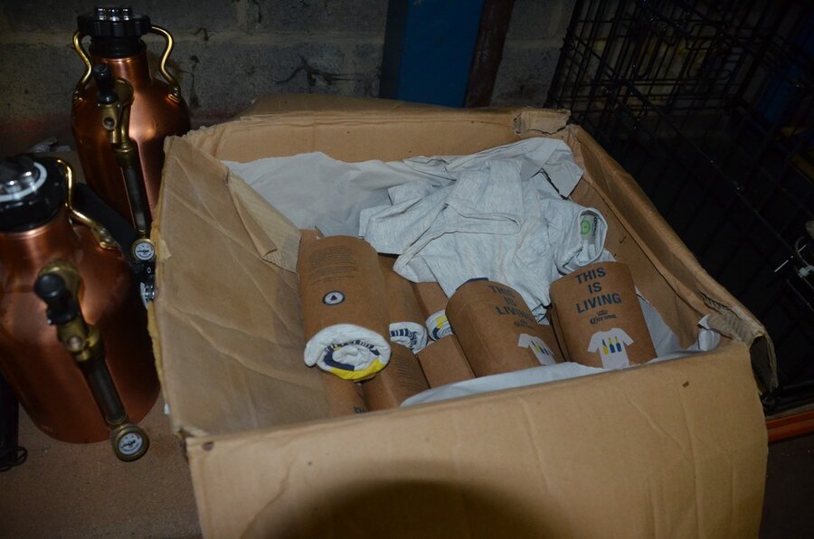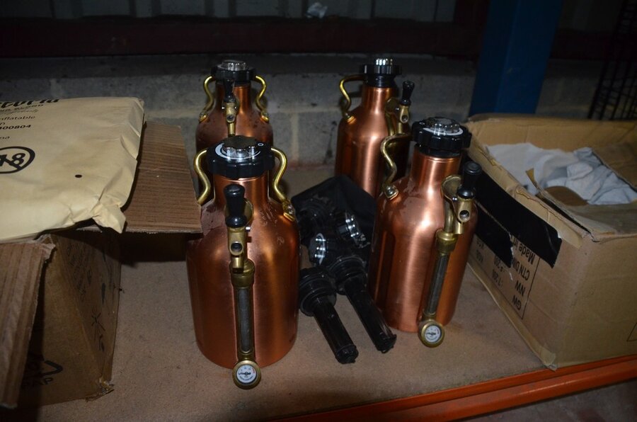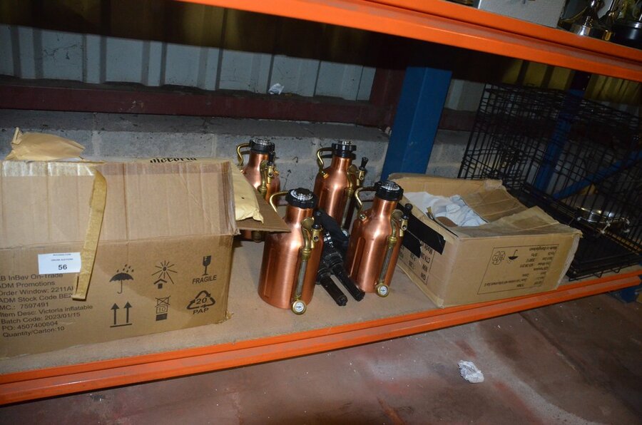 Hondenbench, 4 mini biertappen GROWLER WERKS, 16 t-shirts CORONA maat S, 9 zwembanden