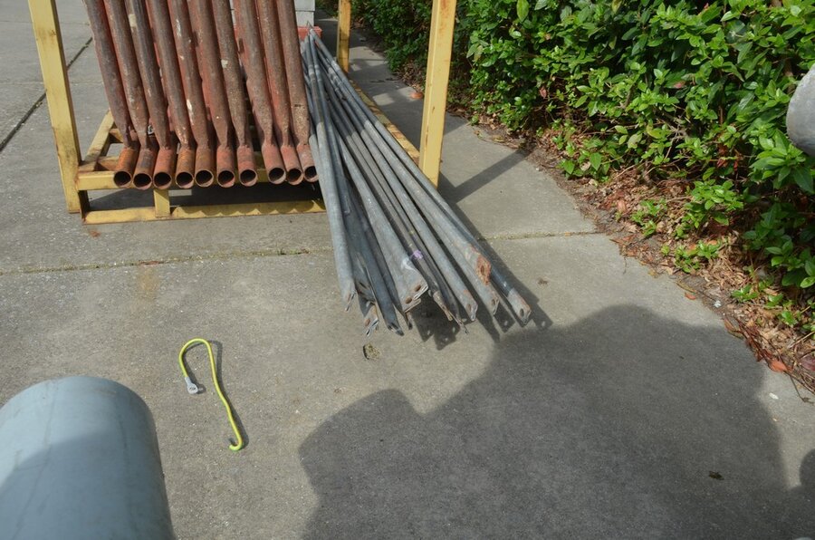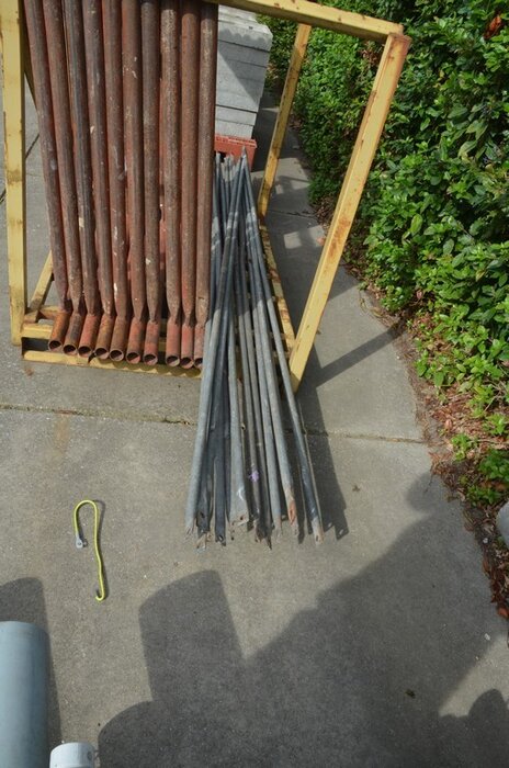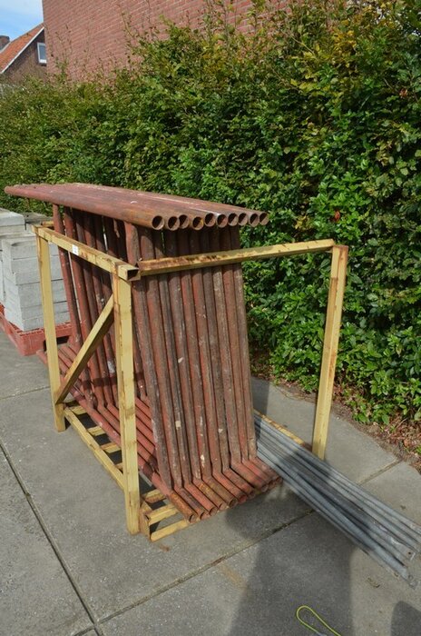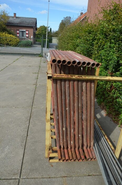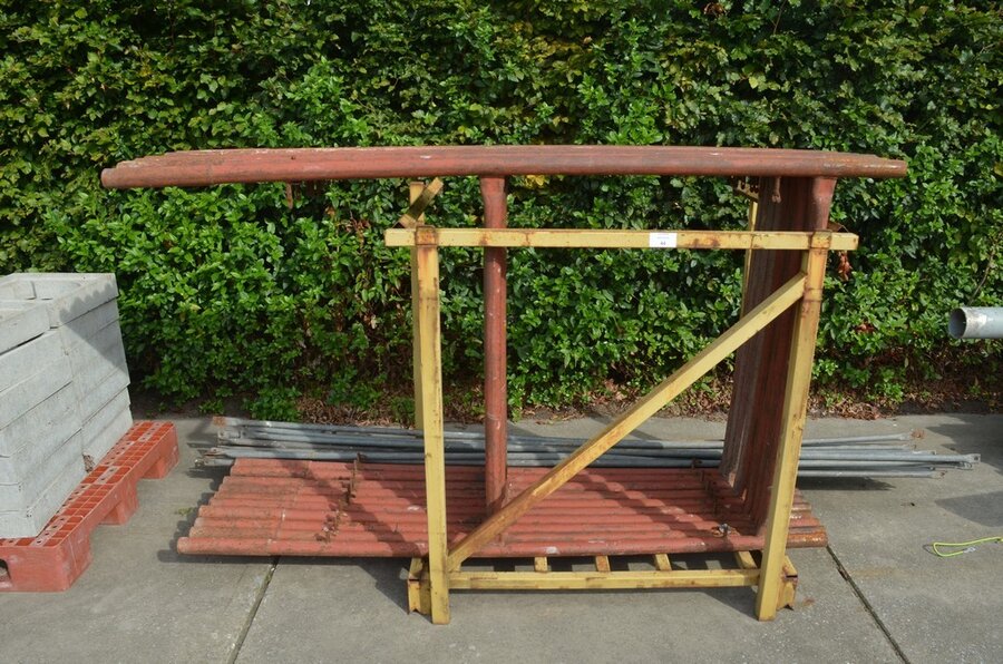 Gele metalen box met 8 stellingselementen met hulpstukken