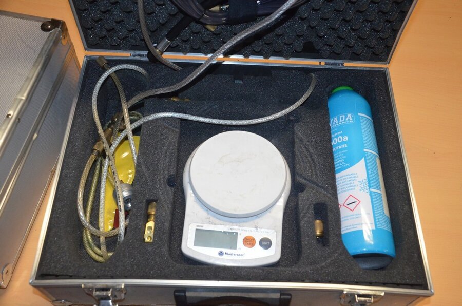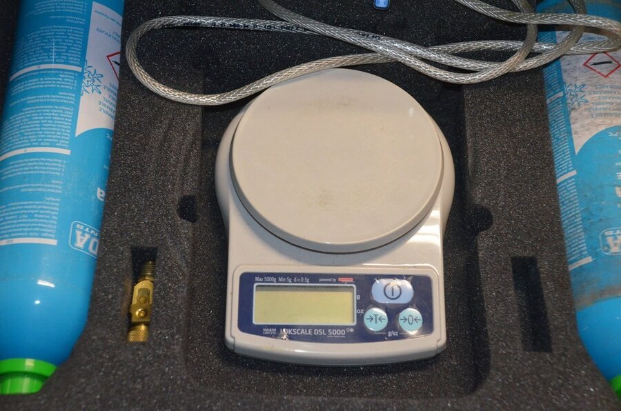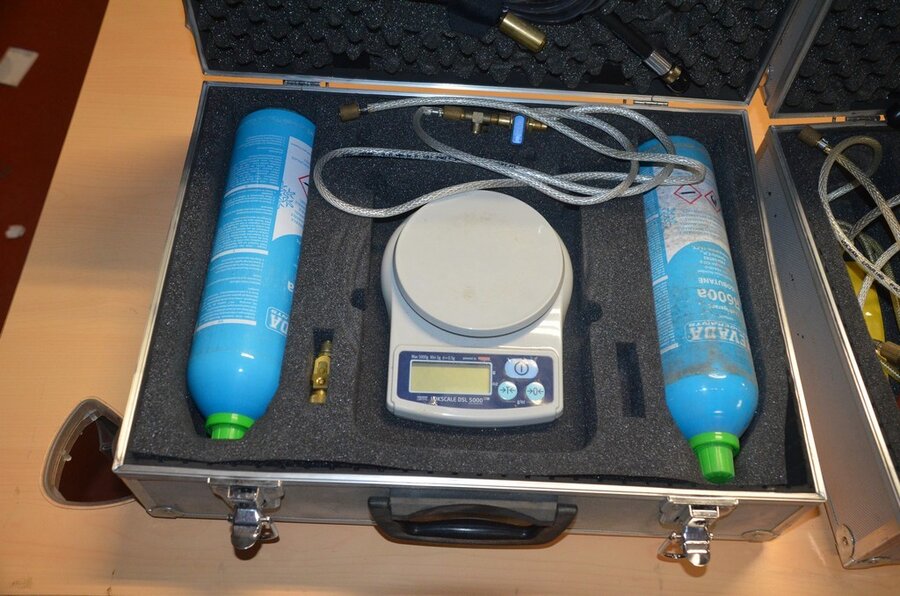 2 alu koffers met koelvloeistof koelkast en digitale weegschaal (b425)