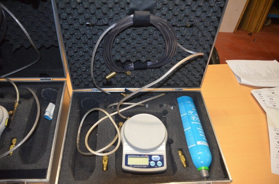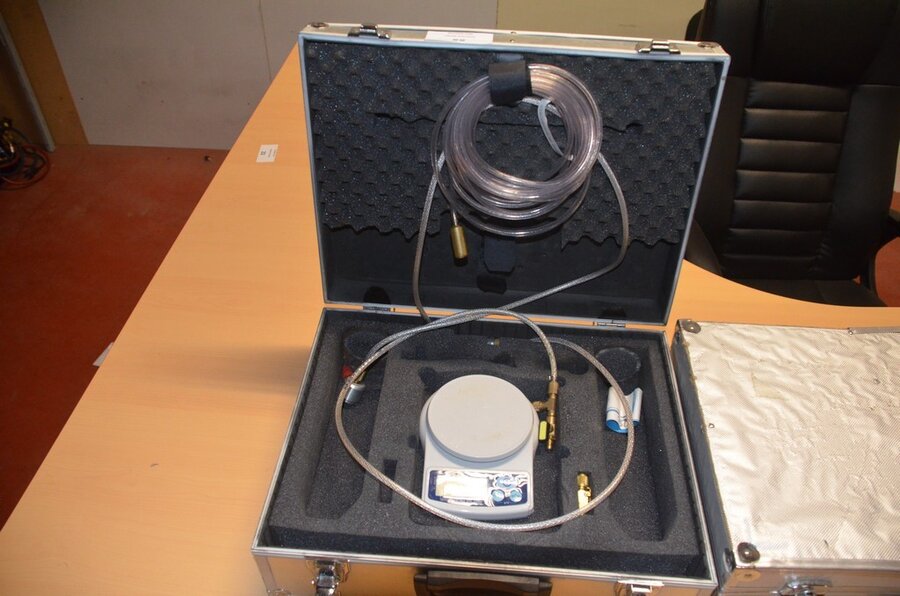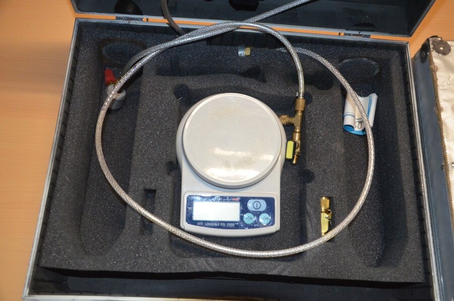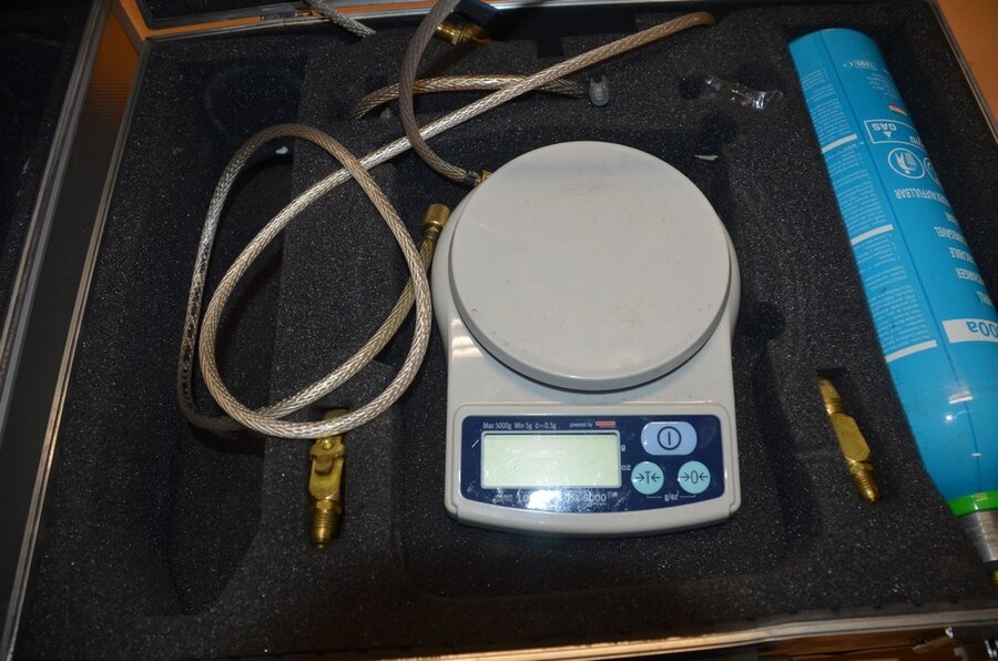 2 alu koffers met koelvloeistof koelkast en digitale weegschaal (b425)