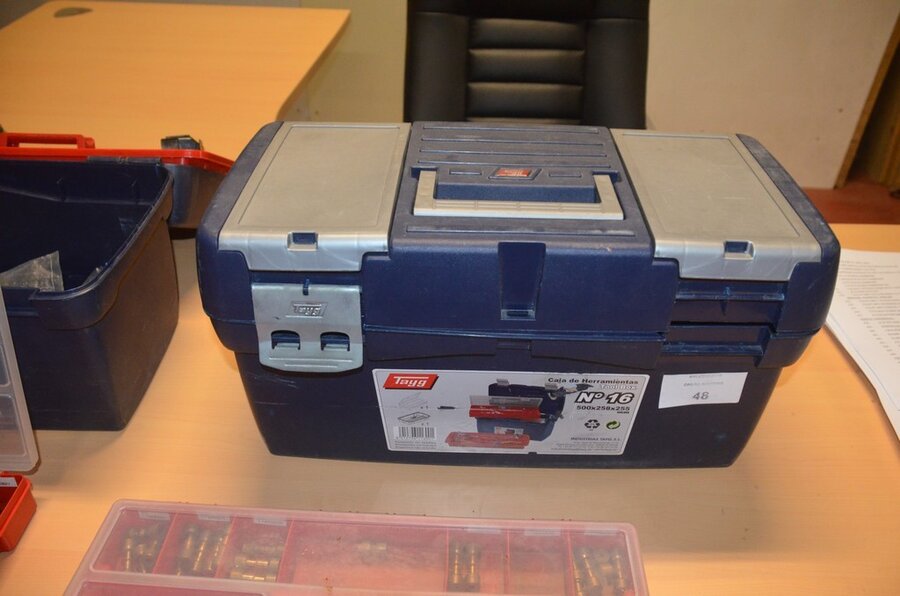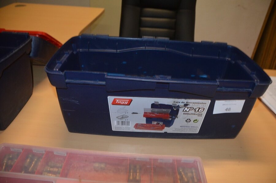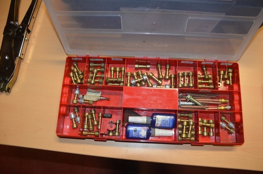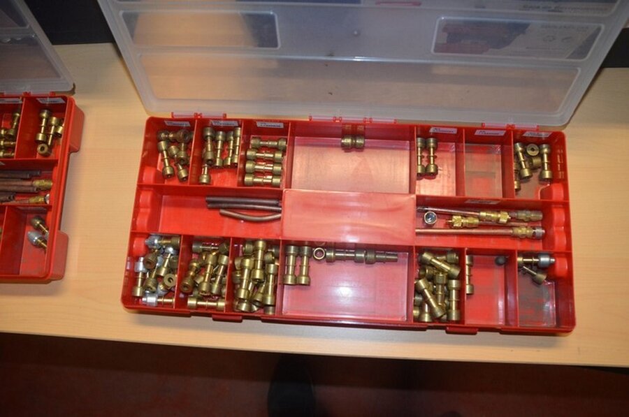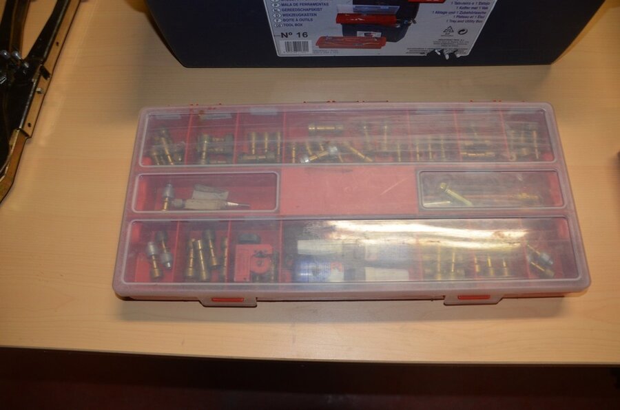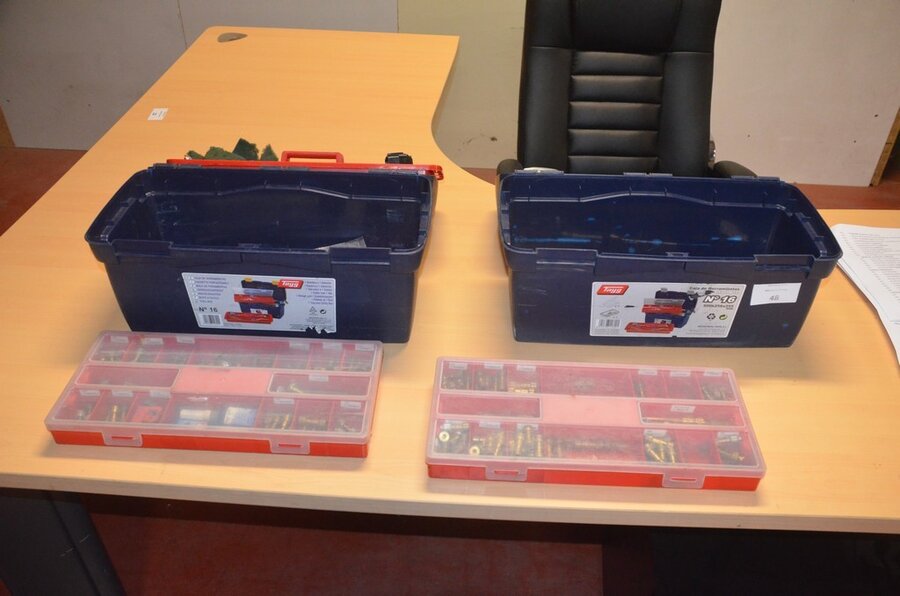 2 pvc gereedschapskisten FAYG, 2 pvc vakkendozen met koppelstukken, 2 VULKAN Lokring krimptangen (b425)