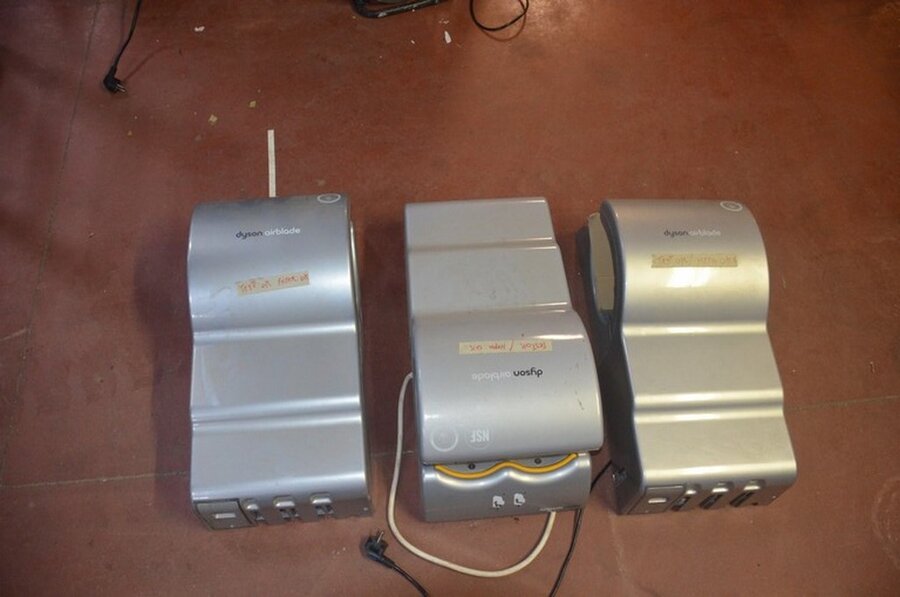 6x DYSON Airblade AB14 handdrogers en 6x DYSON Airblade AB01 handdrogers, gebruikt, werking onbekend (b421)
