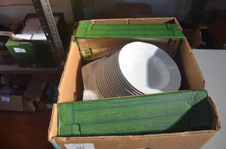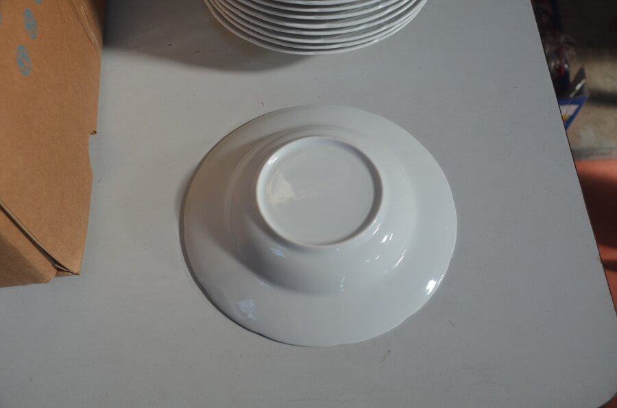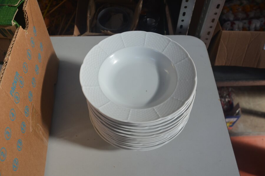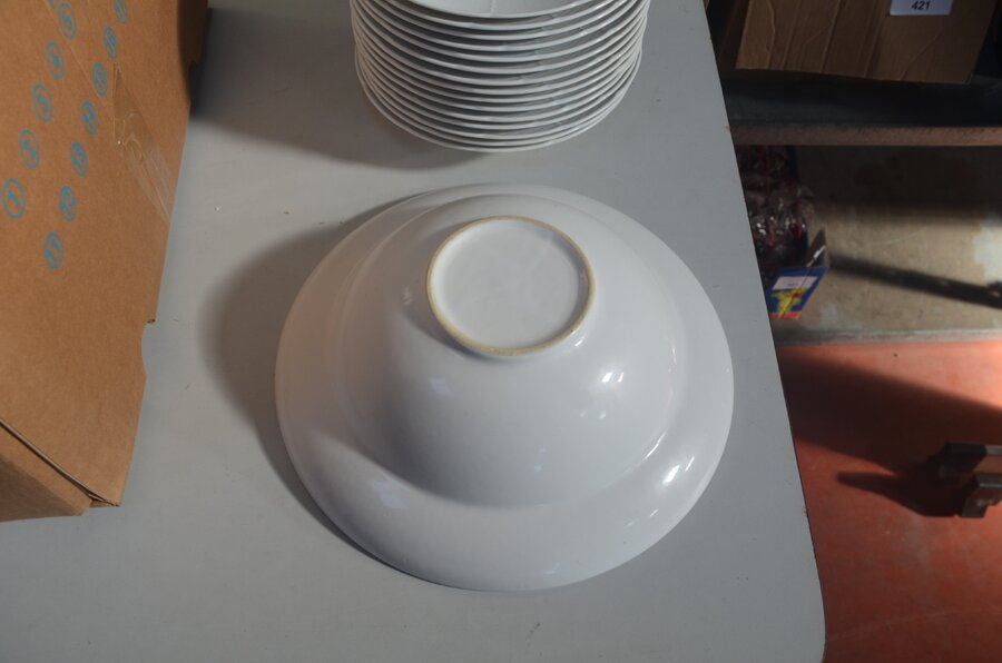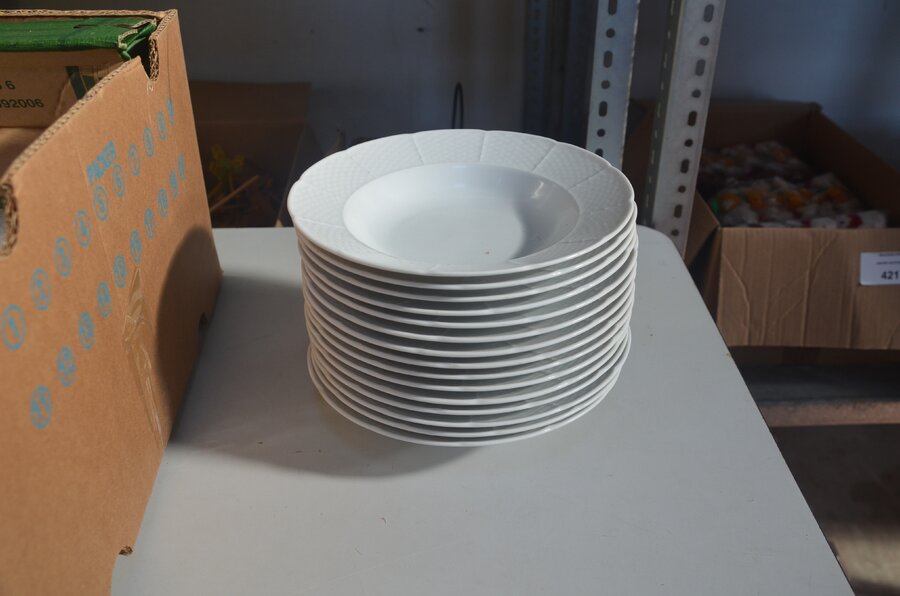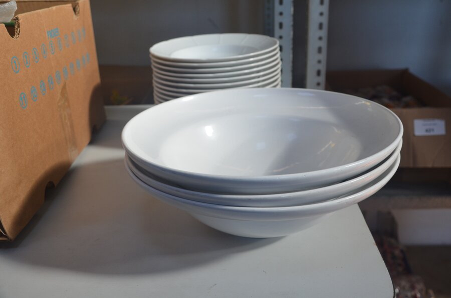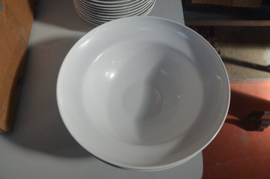 3 grote ronde schalen en 15 pastaborden