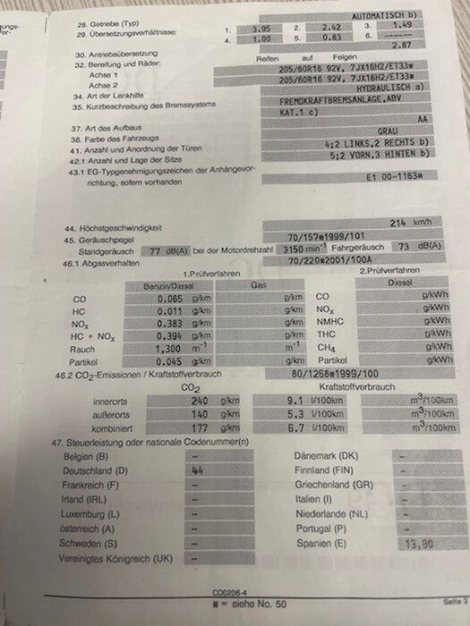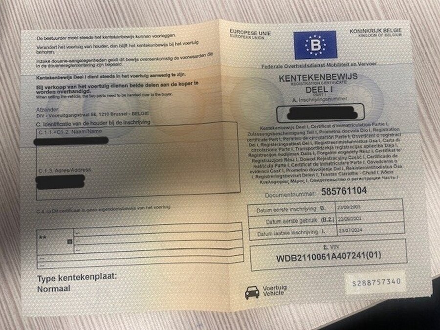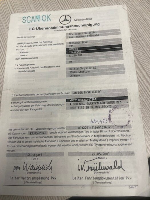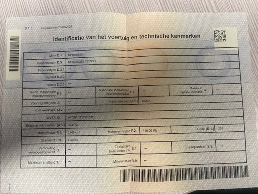 Personenwagen MERCEDES E220 CDI, type 211, variant U00CF0, variant TDAAA510, ch.nr. WDB2110061A407241, bouwjaar 23-09-2003 (sleutel, inschrijvingsbewijs Deel I en gelijkvormigheidsattest)