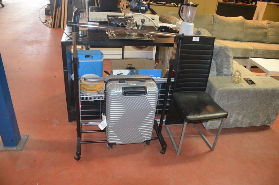 Reistrolley grijs, droogrek, kledingrek, stoel zwart similederen zit en rug