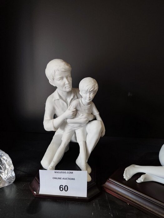 2 Porseleinen beeldjes moeder&zoon, vader&zoon met certificaat, beeldje VAL SAINT LAMBERT, glazen beeldje vrouw, glazen vaas LALIQUE, glazen zwaan LALIQUE