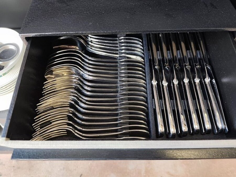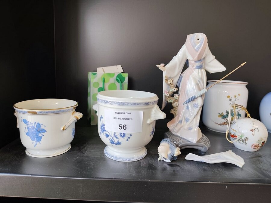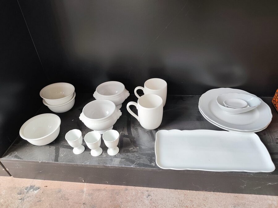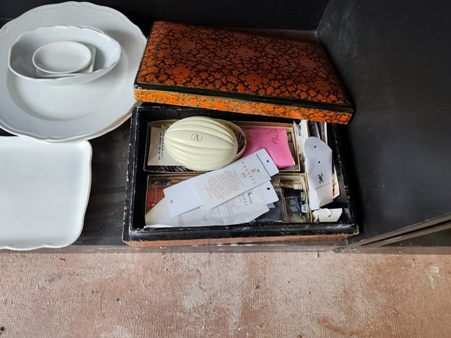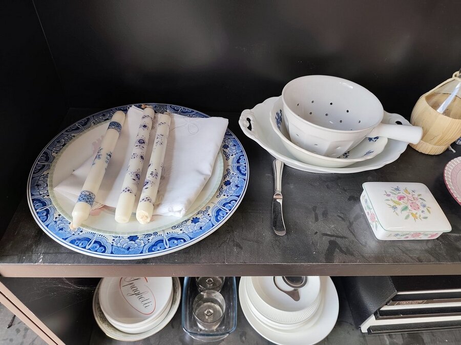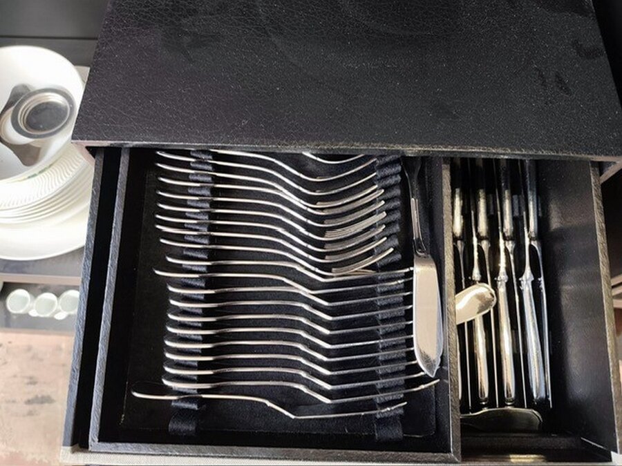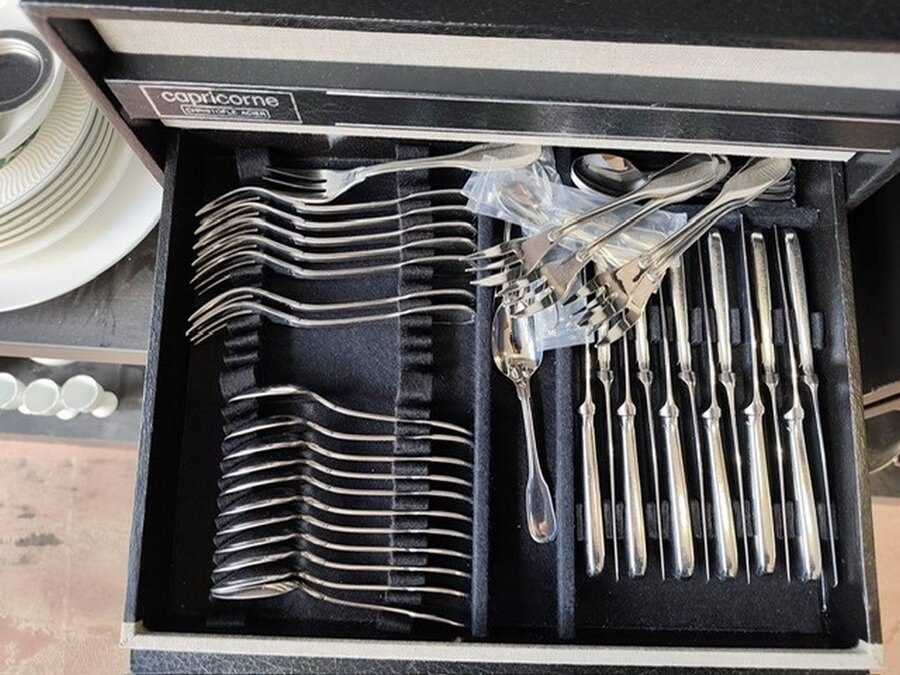 Bestekkoffer uit de capricorne collectie verzilverd CHRISTOFLE, bord HERMES, bord DELFTS, doos met naaigerief, divers aardewerk