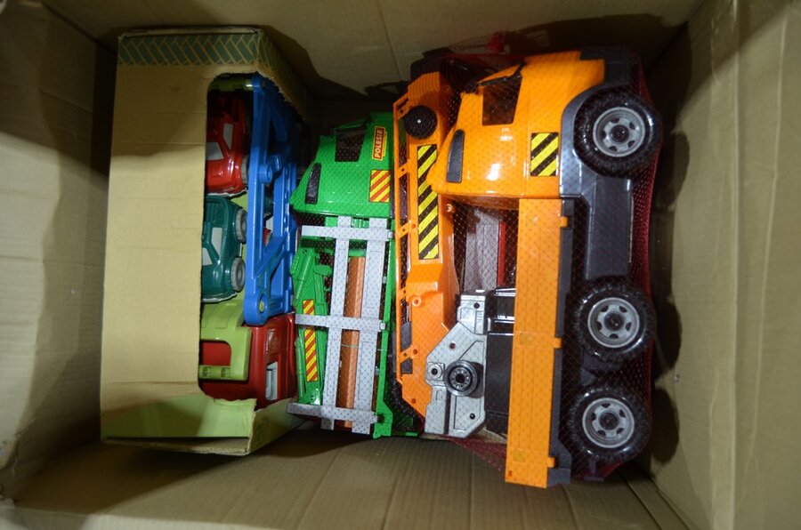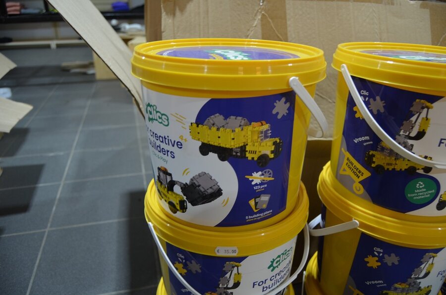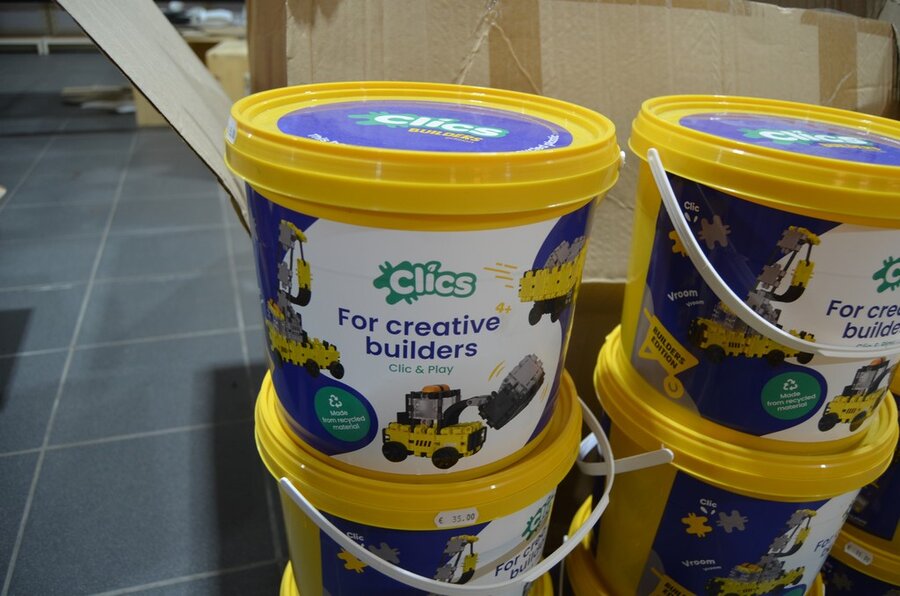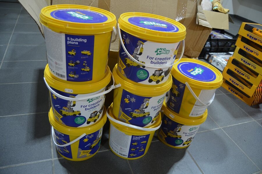 2 Dozen speelgoed autos, 8 emmers CLICS builders (47)