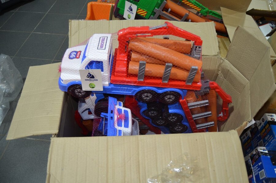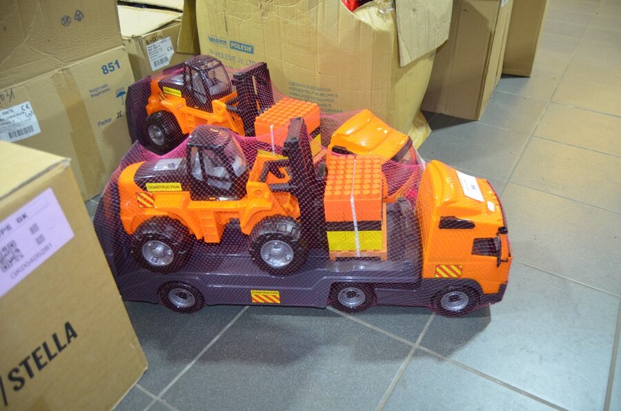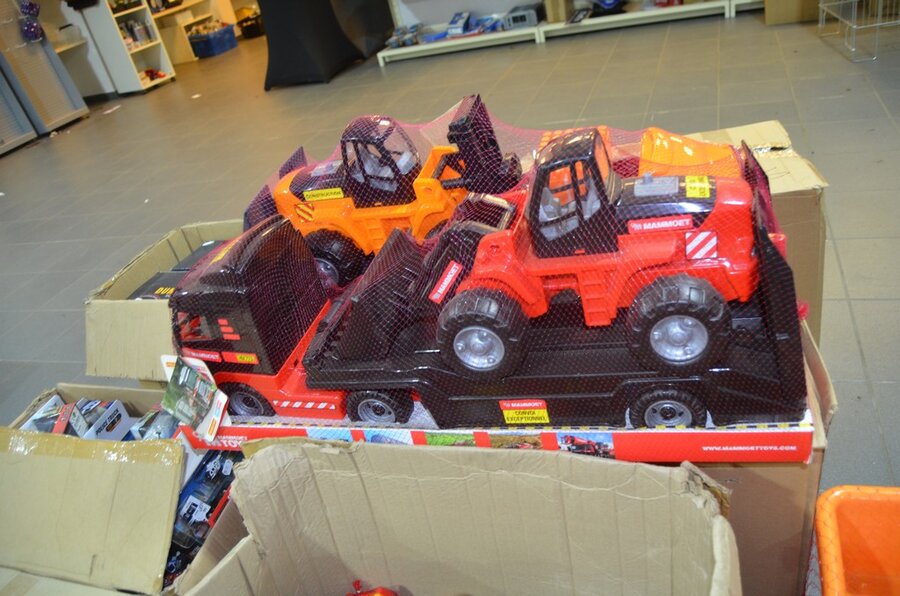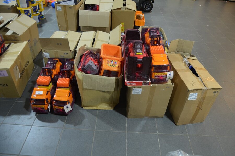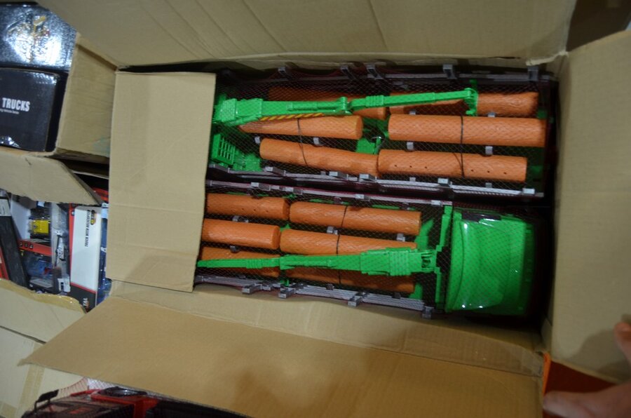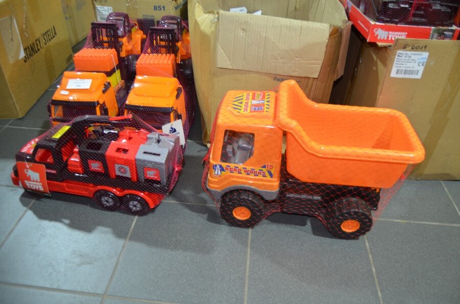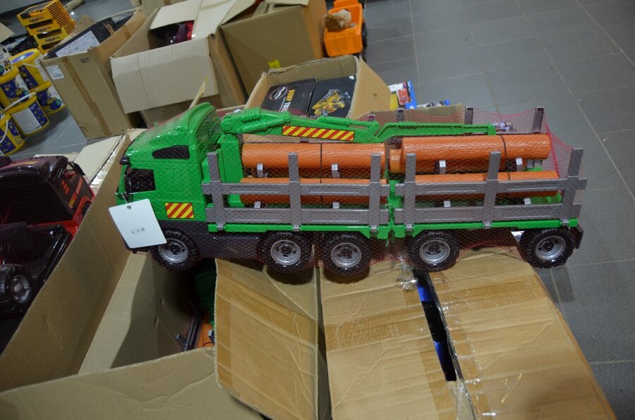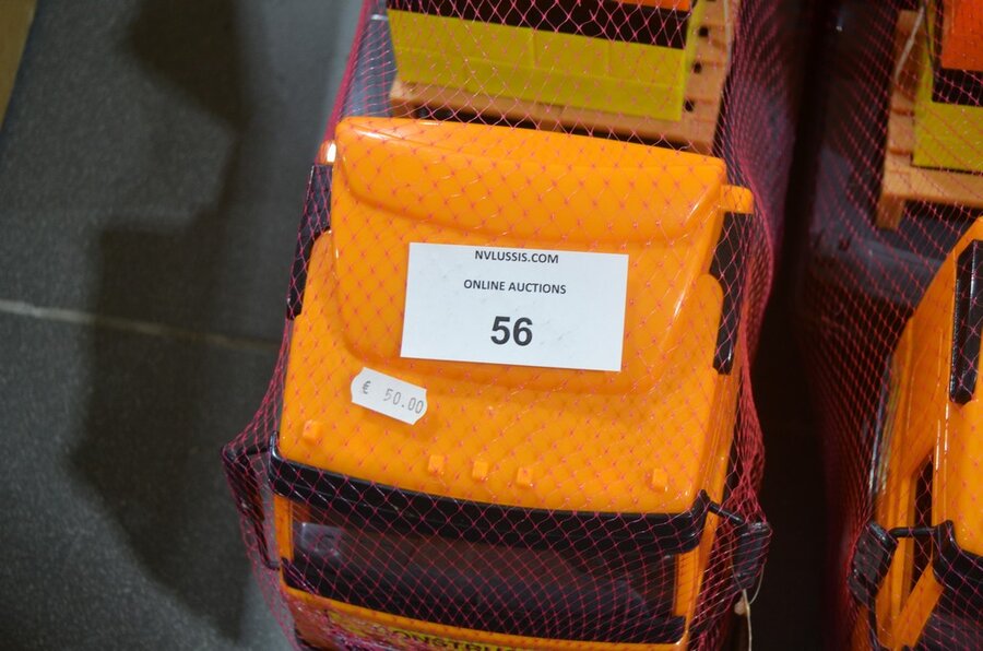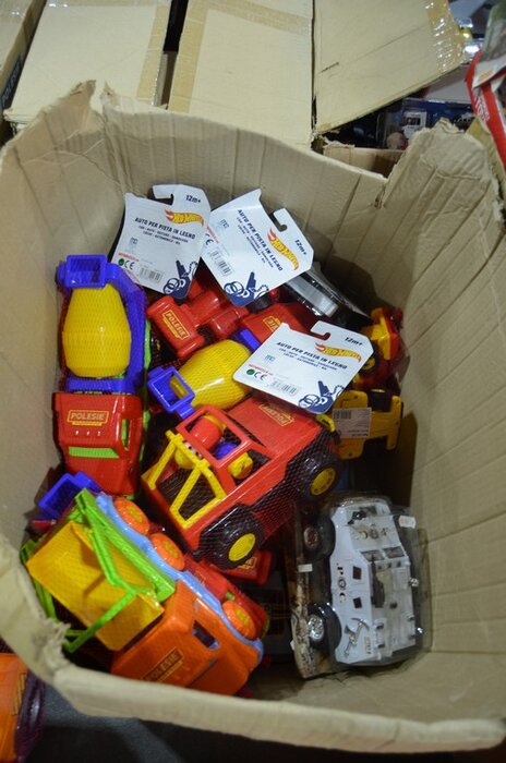 Lotnummer 56 6 Speelgoed vrachtwagens, 3 dozen gevuld met speelgoed autos en vrachtwagens (44) Deze veiling is afgelopen