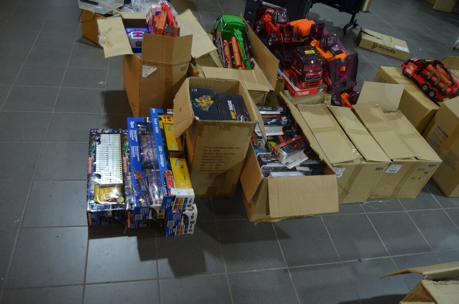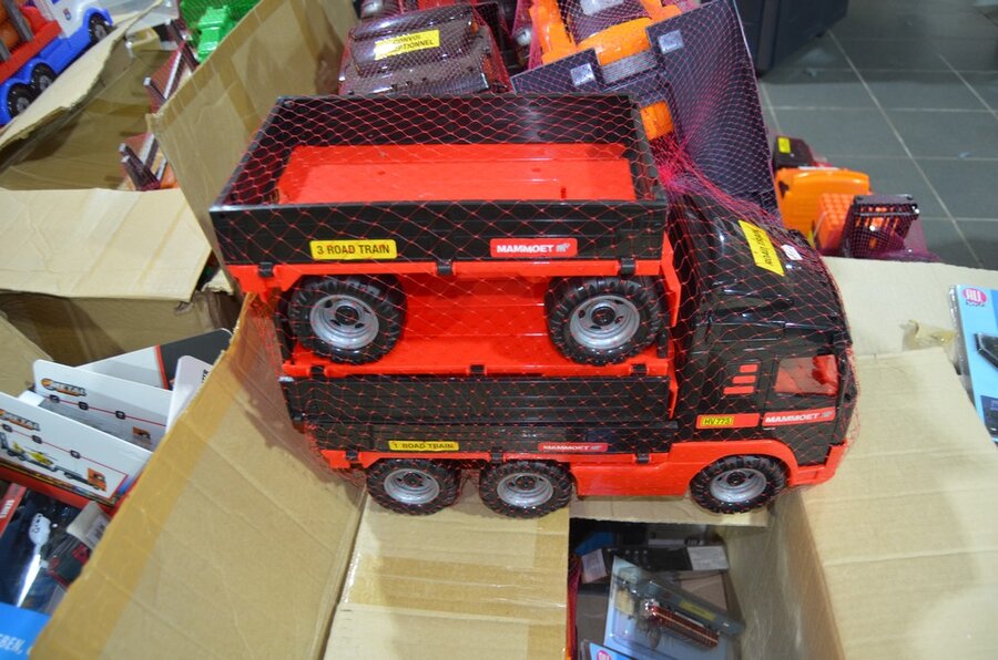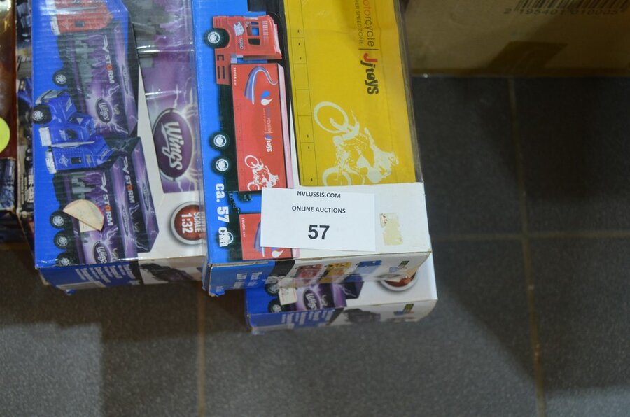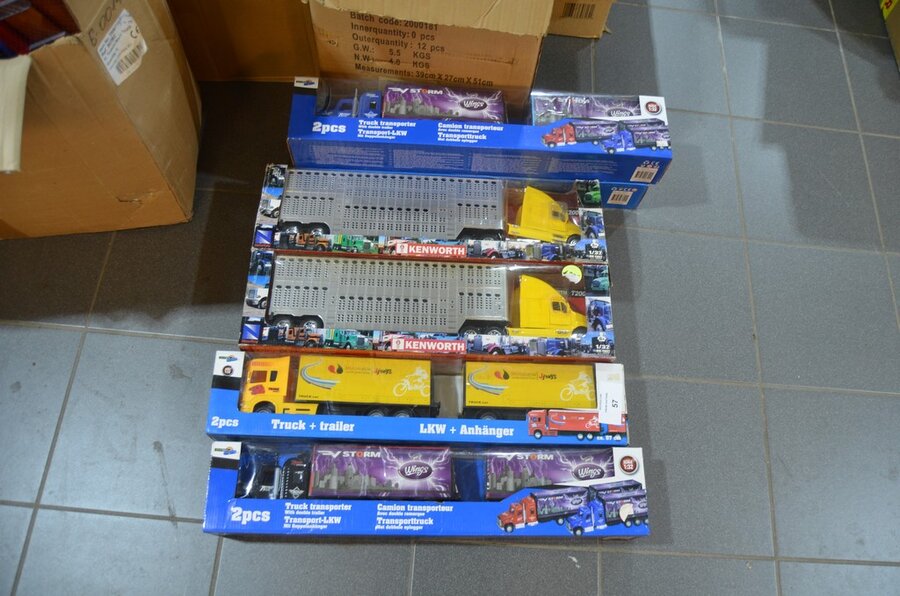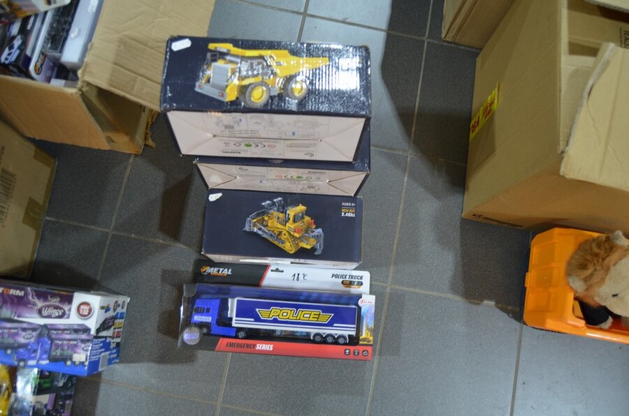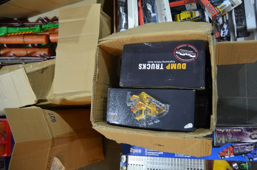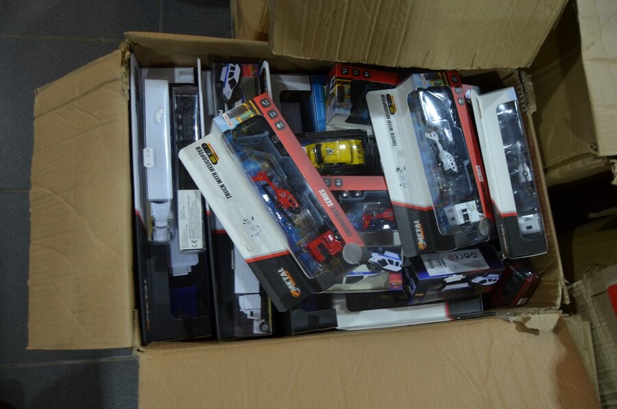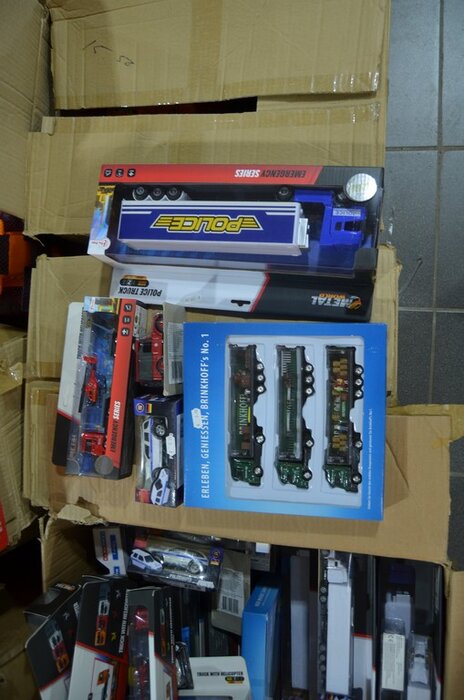 Lotnummer 57 9 Speelgoed vrachtwagens, 3 dozen gevuld met speelgoed autos (45) Deze veiling is afgelopen
