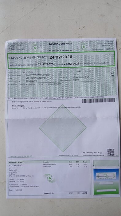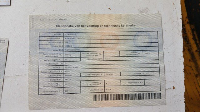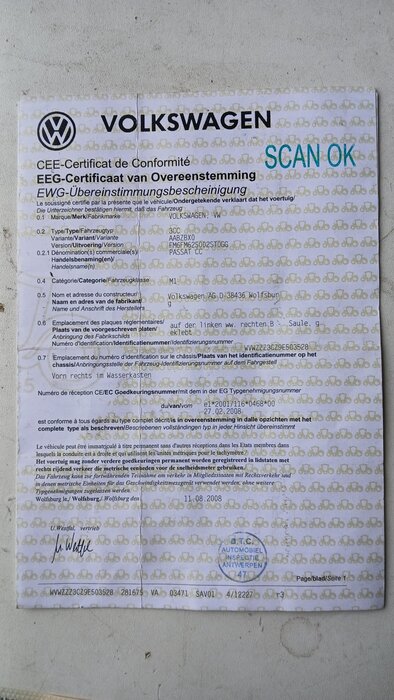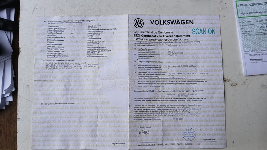 Sedan VOLKSWAGEN PASSAT CC, type: 3CC, variant: AABZBX0, versie: FM6FM62S002ST0G, chassisnummer: WVWZZZ3CZ9E503528, bouwjaar: 25/06/2008 met inschrijvingsbewijs deel I en II, gelijkvormigheidsattest, schouwingsbewijs en 2 sleutels