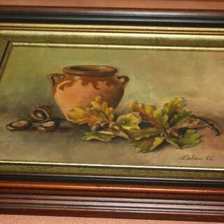 2 schilderijen op doek: A. LIEBEN, 2 wandversieringen